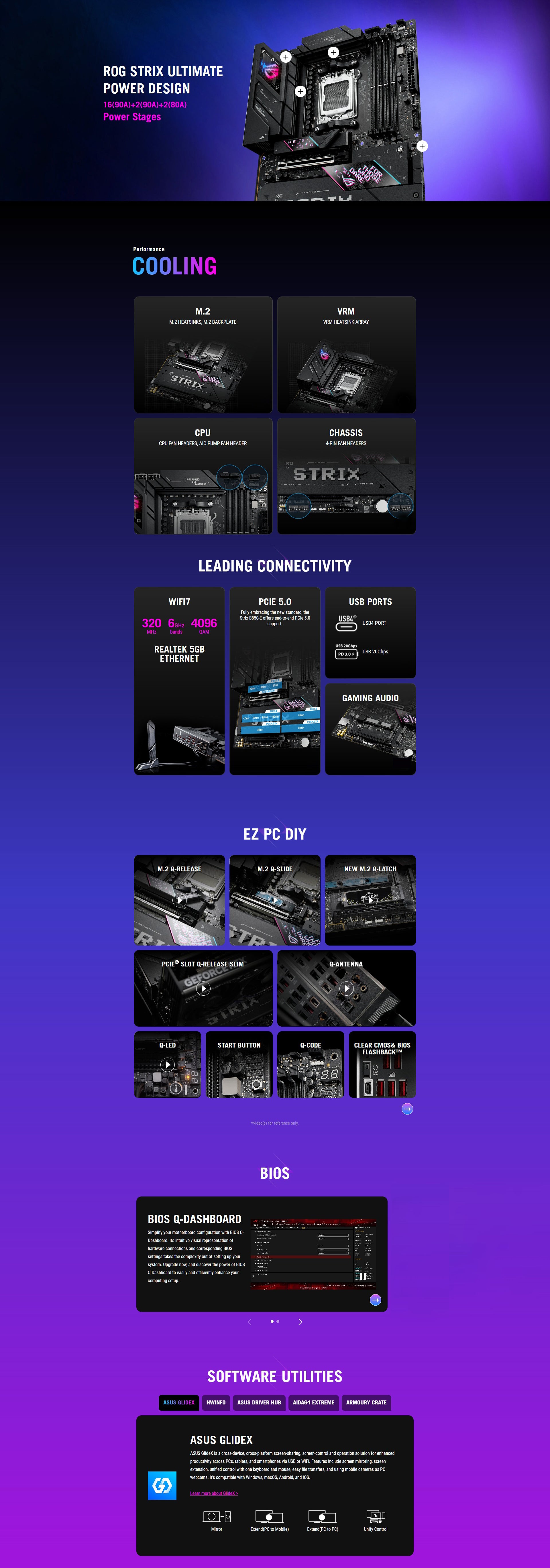 | Accessories | SATA cables, WiFi antenna, M.2 kit, Thermal pad, Cable ties, ROG stickers, Keychain, Quick guide |