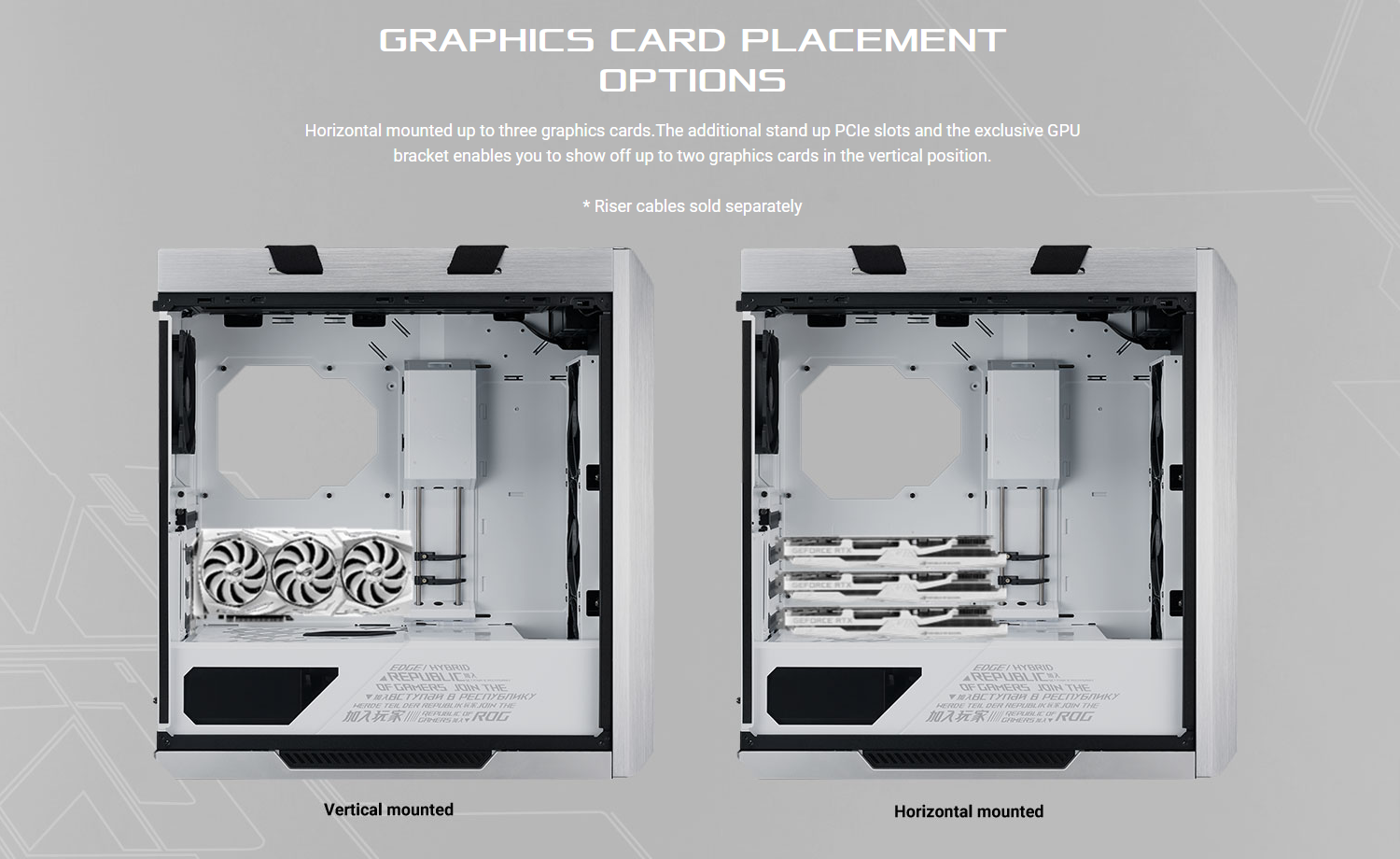 - Versatile GPU mounting: Install three graphics cards in standard orientation, or two vertically for extra showcase flair using a bundled bracket