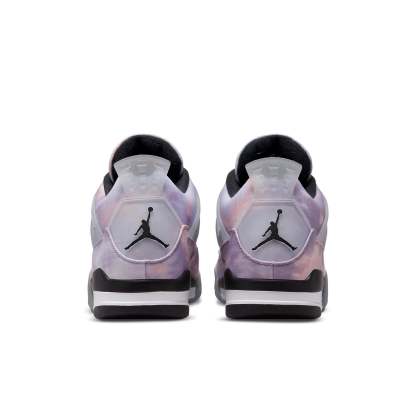 The Nike Air Jordan 4 Retro "Zen Master" pays tribute to the legendary basketball coach, Phil Jackson. This sneaker features a textile upper in a tie-dye mix of pink, purple, and blue. The black woven tongue has Flight branding and a scarlet Jumpman icon. The polyurethane midsole has a visible Air-sole unit in the heel. This sneaker is perfect for fans of Coach Jackson or anyone who loves a pop of color in their wardrobe.