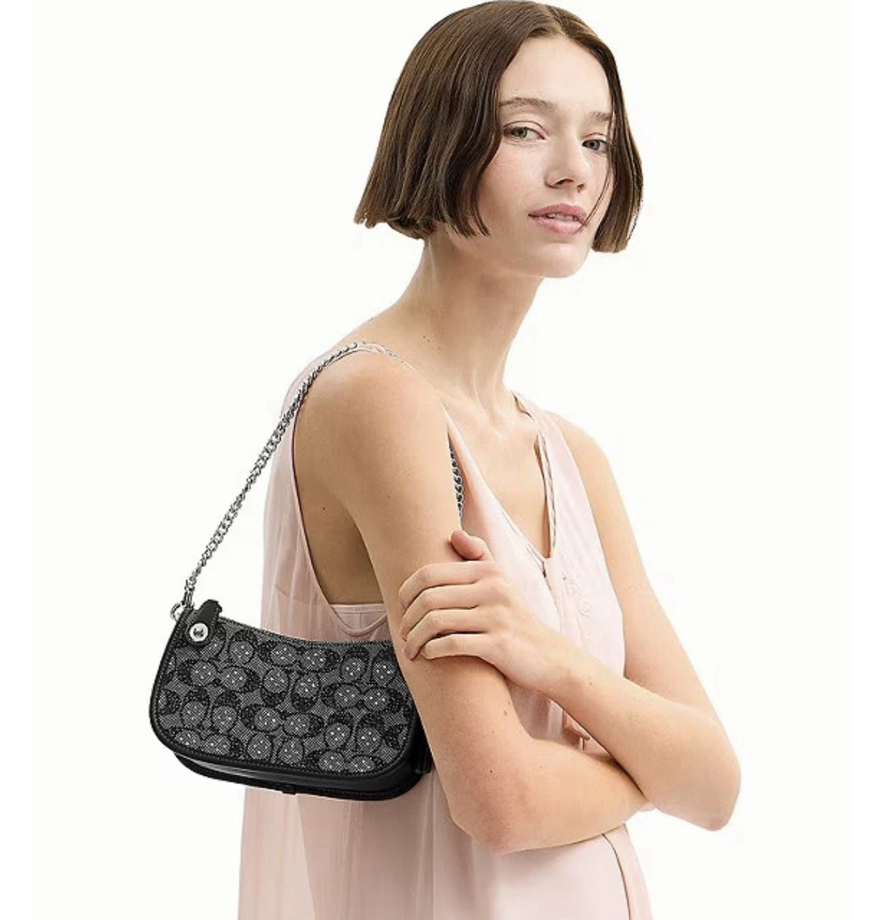 NWT-Coach Swinger Bag 20 With Chain In Crystal Signature Jacquard-Sold Out!