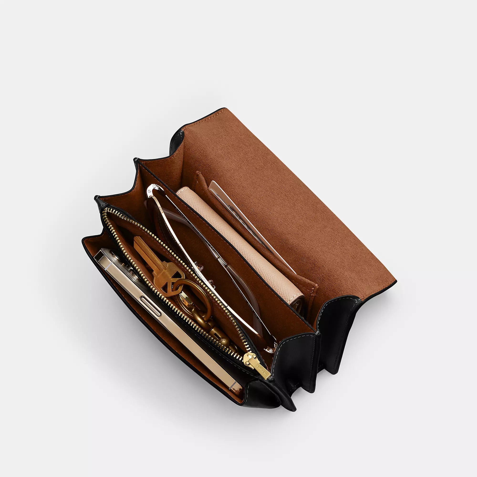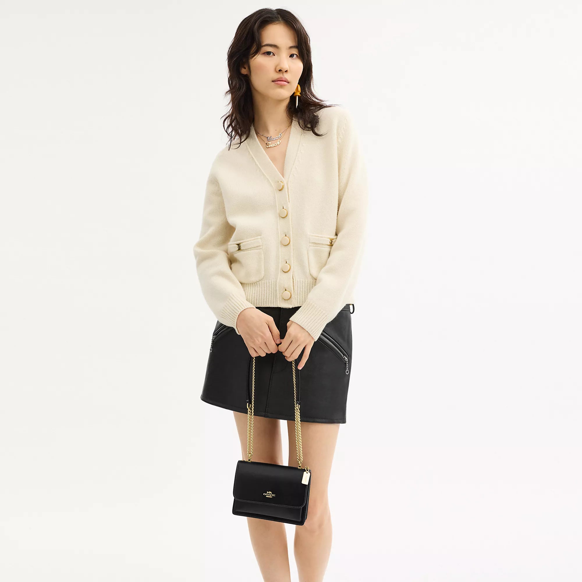Shiny refined calf leather Inside multifunction and zip pockets Snap closure fabric lining Outside open pocket Handles convert to shoulder strap with 22 drop 7 (L) x 5 1/4 (H) x 2 (W) Style No. CBI23 | Coach Outlet Mini Klare Crossbody Bag - Black