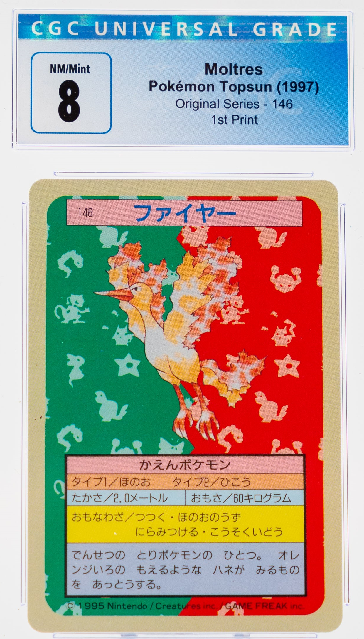 Moltres 146 Topsun 1st Print Blue Back - 1997 Pokemon - CGC 8