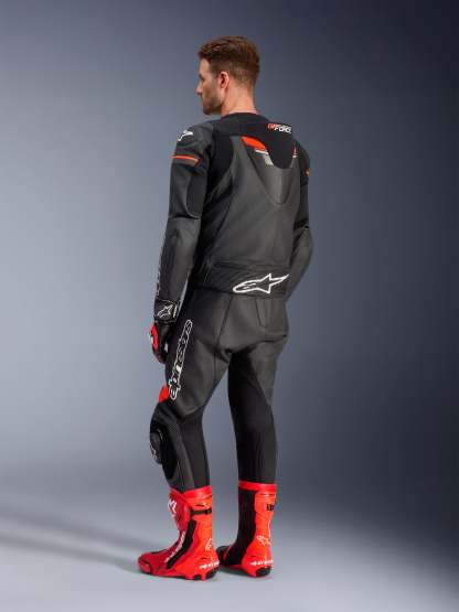 The GP Force Chaser 2PC Leather Suit is constructed from bovine leather for unsurpassed abrasion and tear resistance. Fully optimized for use with or without Tech-Air® 5, Alpinestars world leading electronic Airbag Safety System, the GP Force Chaser 2PC Leather Suit incorporates Alpinestars GP protectors for effective impact protection and external sliders at the joints for unparalleled abrasion resistance.