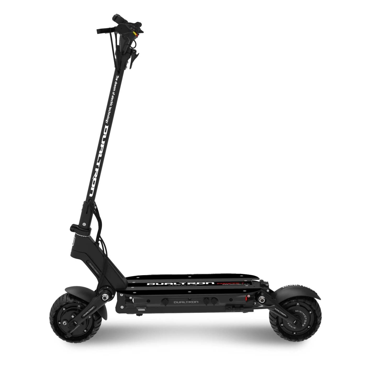 The Dualtron Compact is a powerhouse for its size. The Compact features dual drive BLDC hub motors capable of putting out 3,400 watts max. It comes with drum brakes coupled with ABS to ease the maintenance, and eight inch solid tires so you don't need to worry about flats. A 60 volt 30Ah battery pack with LG cells will give you up to a 60 mile range.