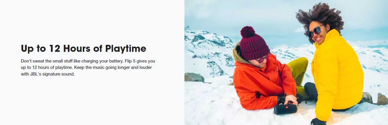 Take your tunes on the go with the powerful JBL Flip 5. Our lightweight Bluetooth speaker goes anywhere. Bad weather? Not to worry. With its waterproof design, you can rock out to our signature sound rain or shine. Move more. Pair two JBL PartyBoost-compatible speakers together for stereo sound or link multiple JBL PartyBoost-compatible speakers to create a bigger party. Enjoy up to 12 hours of play time for your favorite music. Stand it vertical or horizontal and be bold with your choice of 11 vibrant colors.