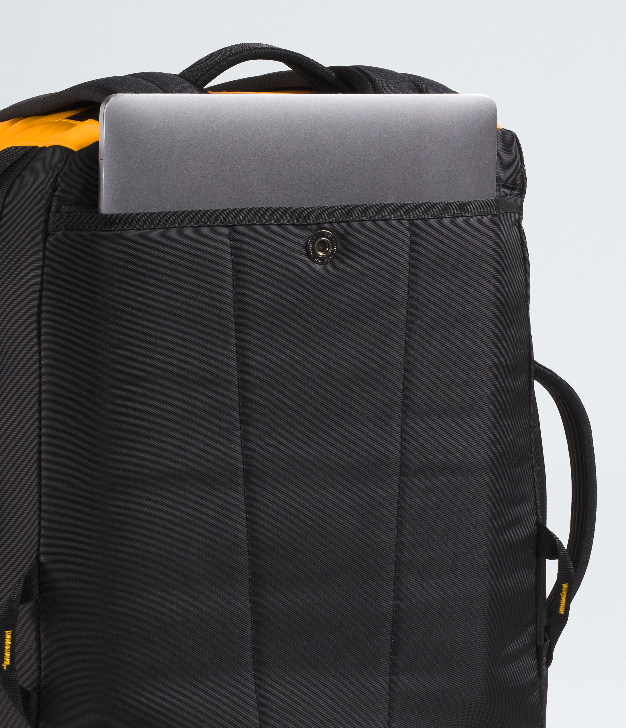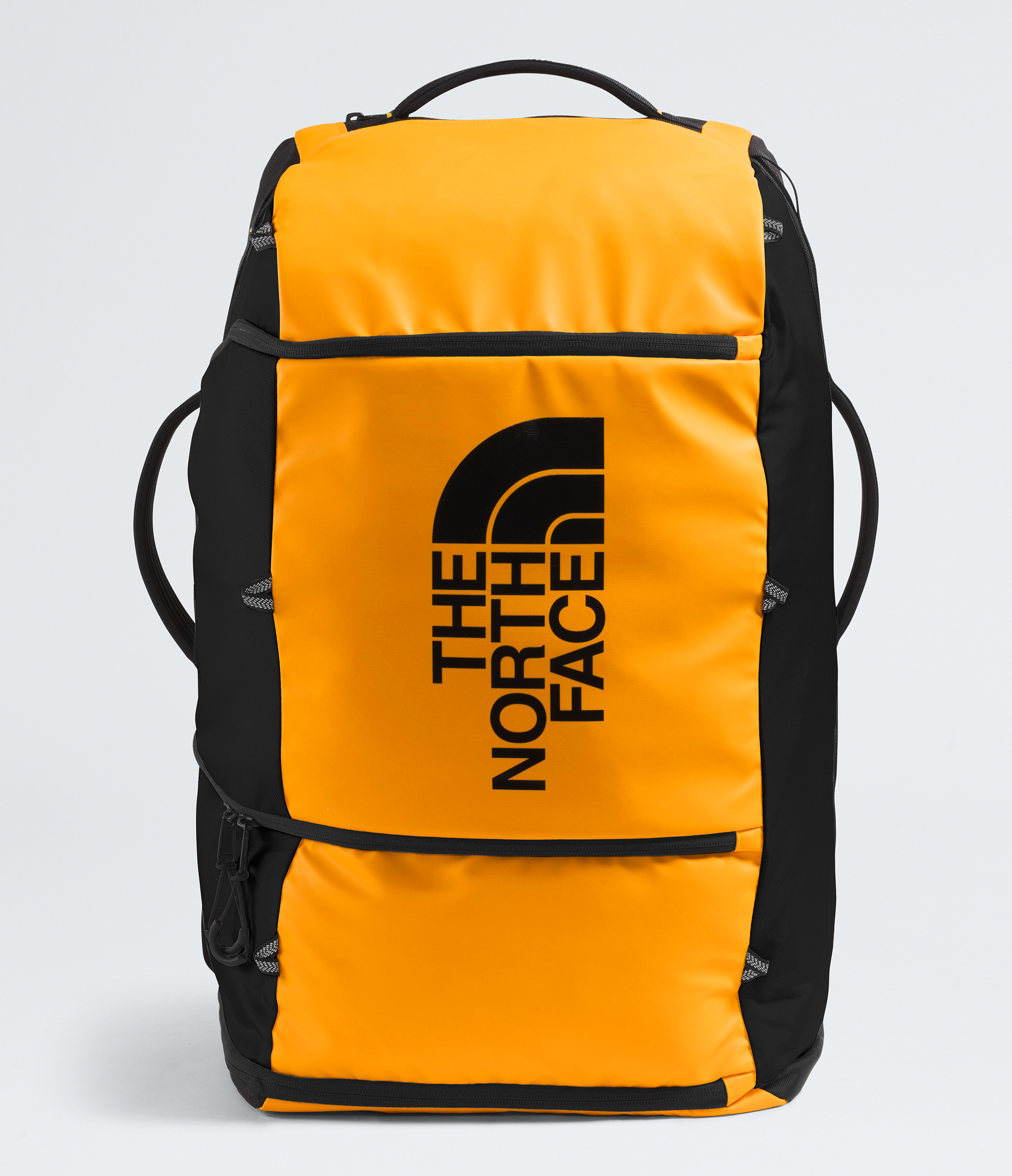 - Back panel has colorful webbing loops that allow you to attach the pack to the Base Camp Snow Roller