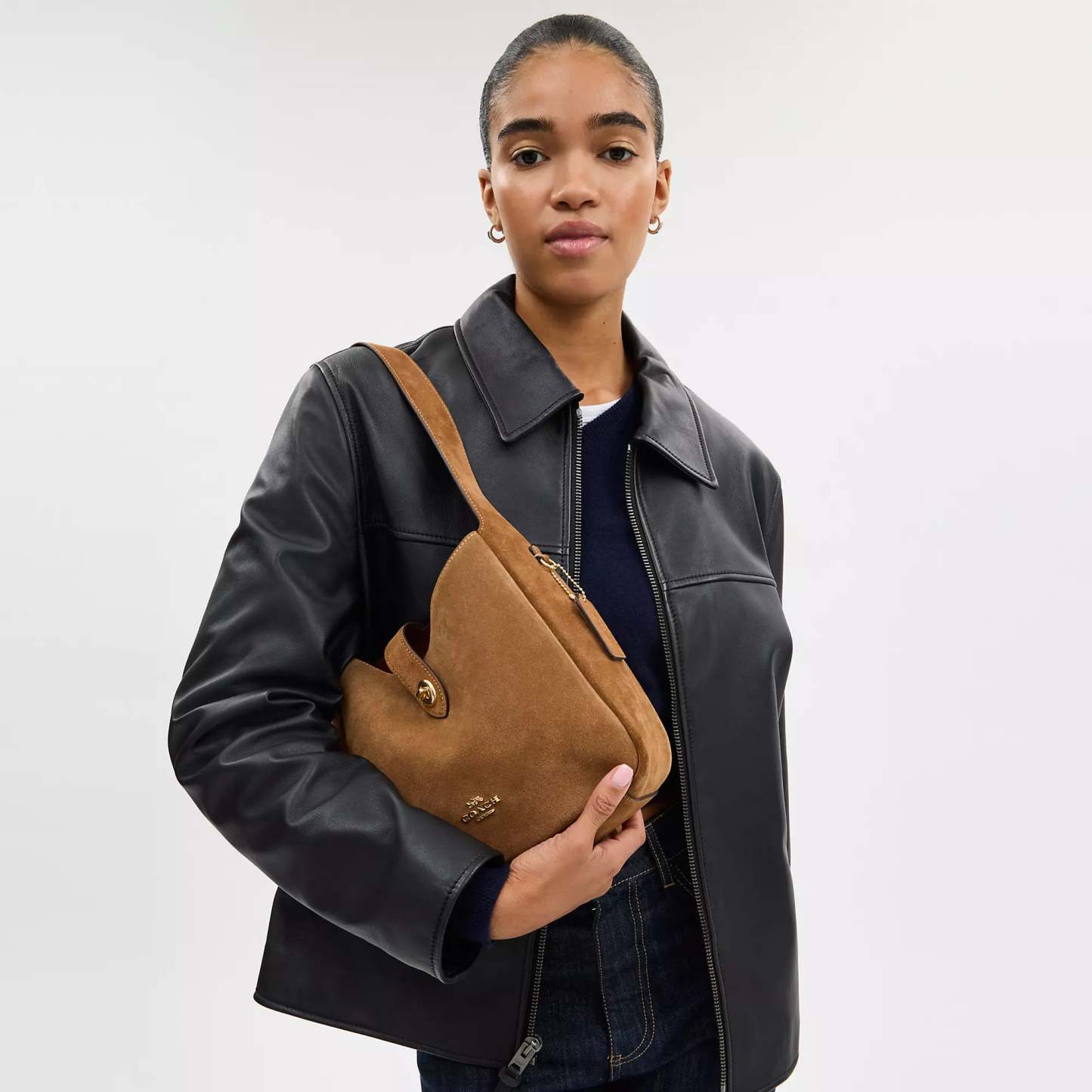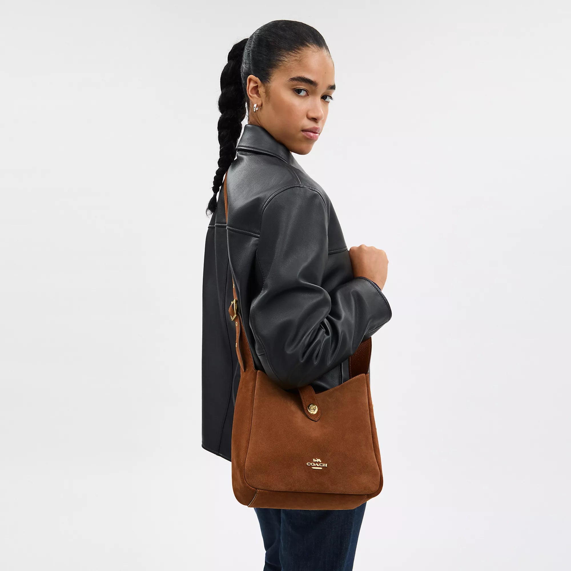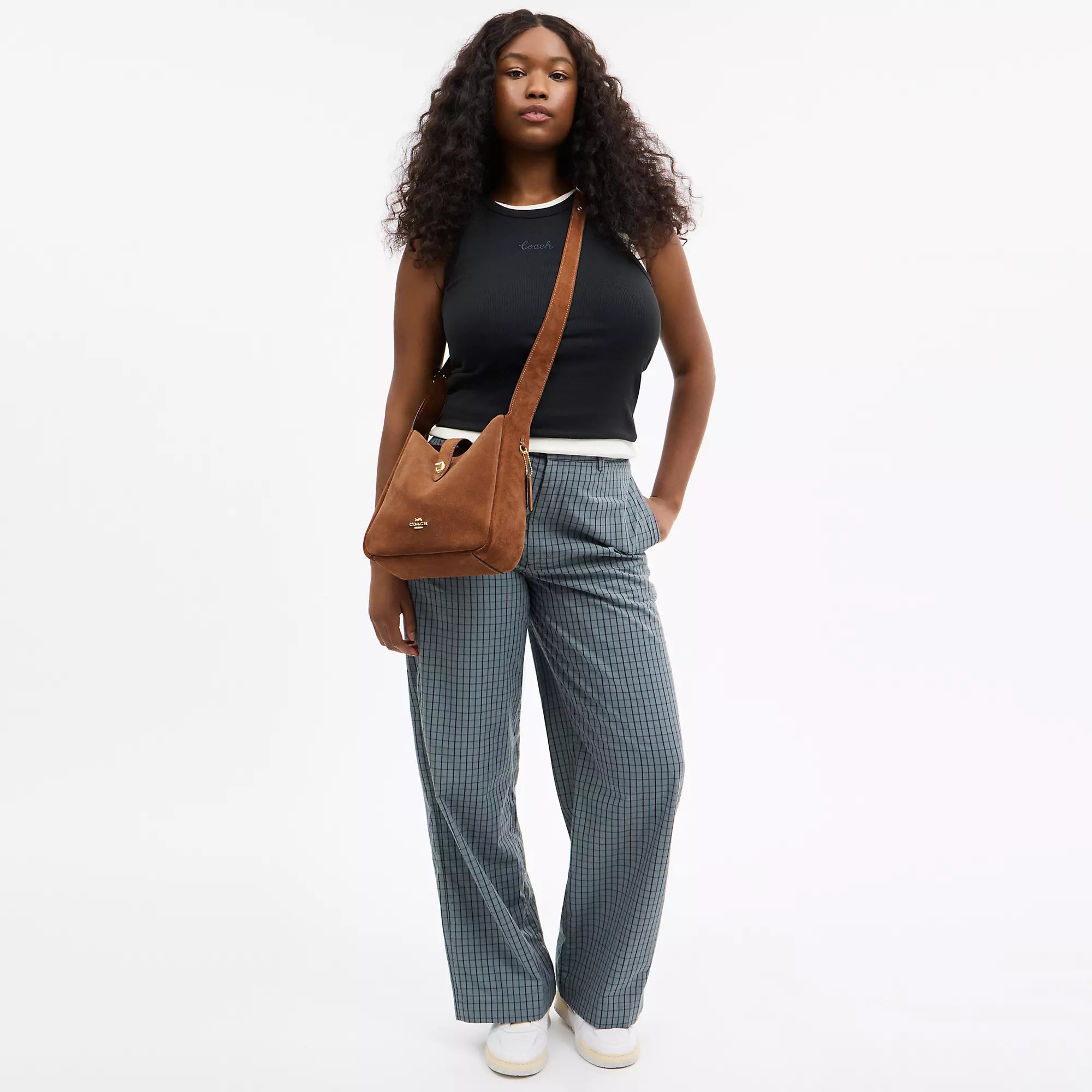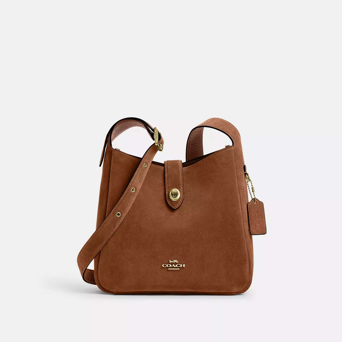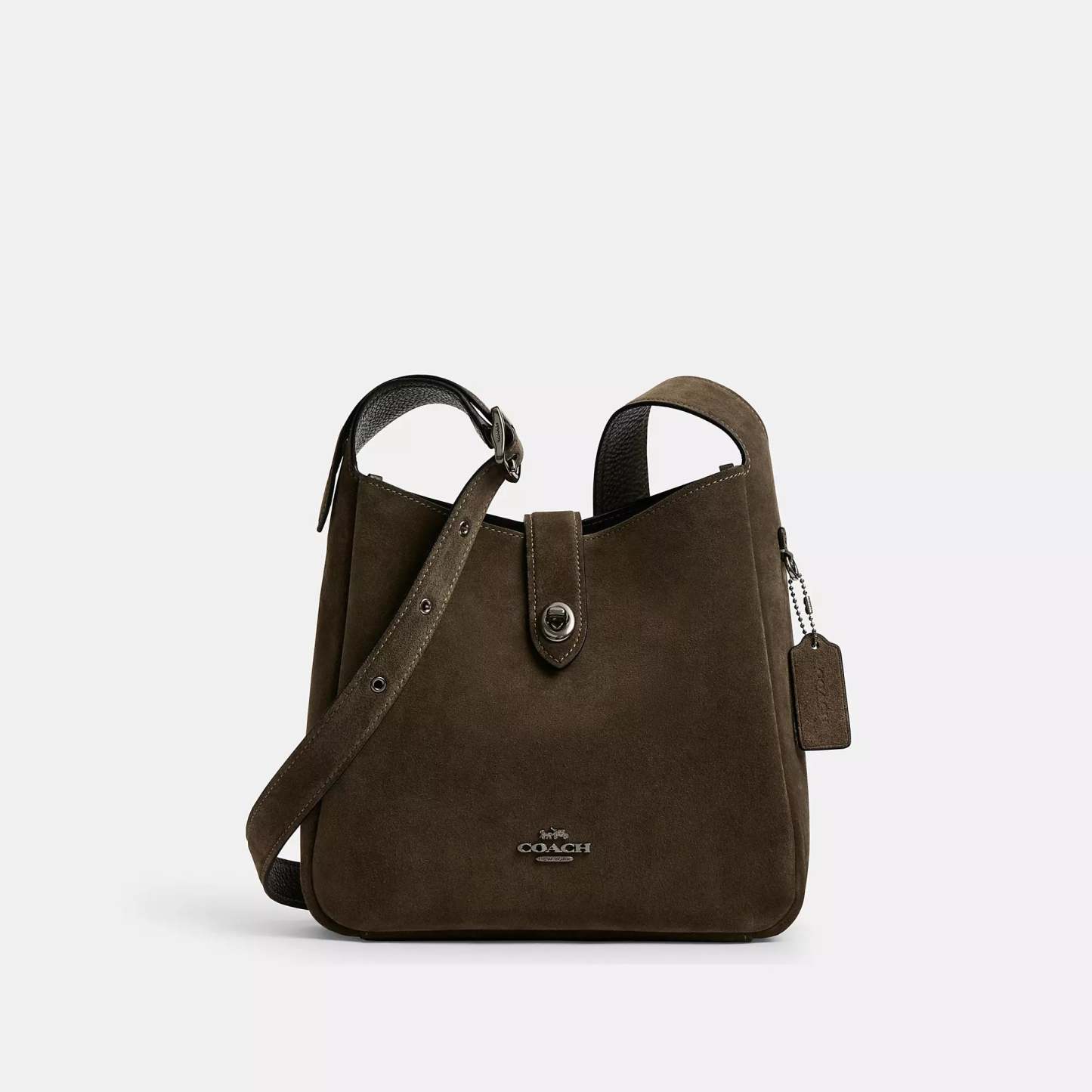 Suede and refined pebble leather Inside zip pocket Turnlock closure fabric lining Adjustable strap with 20 1/2 drop for shoulder or crossbody wear 9 3/4 (L) x 9 1/2 (H) x 3 1/4 (W) Style No. CCG43 | Coach Outlet Hadley Convertible Crossbody Bag - Brown