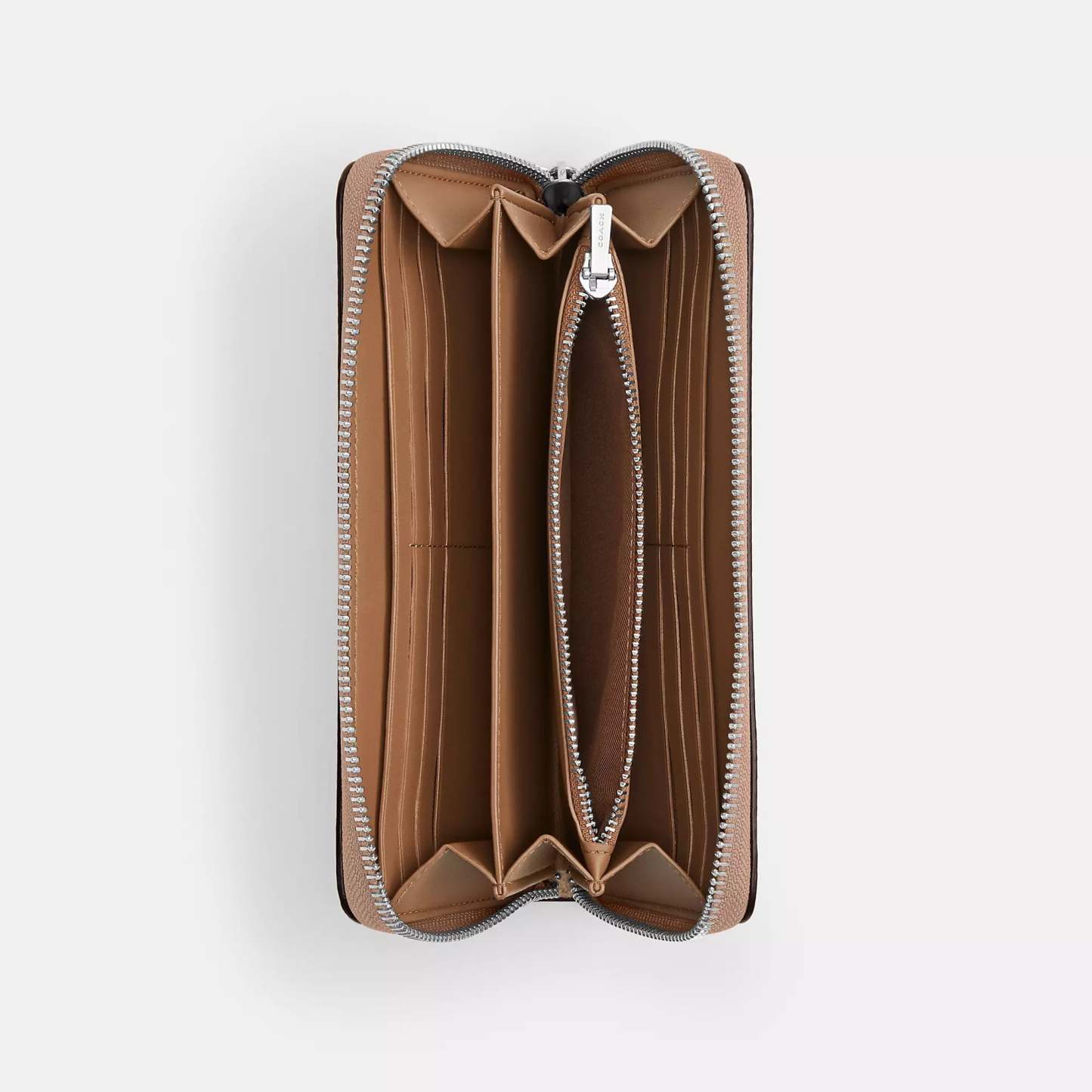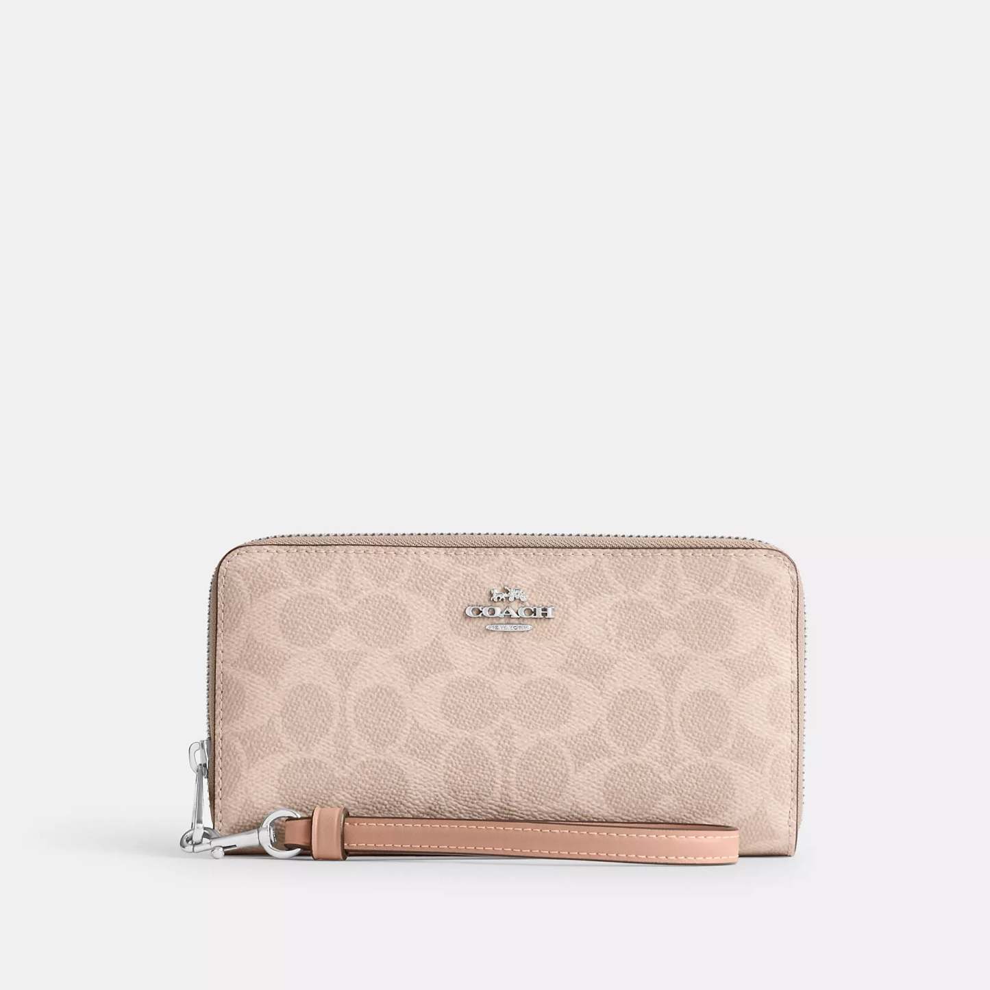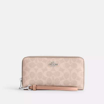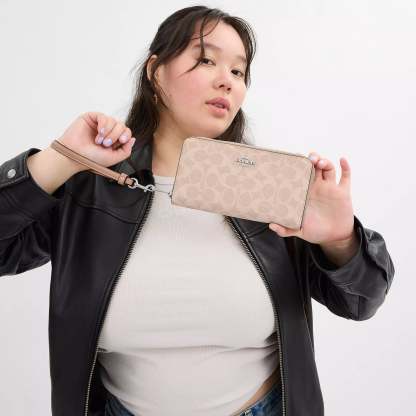 Signature coated canvas 12 credit card slots Full-length bill compartments Inside zip coin pocket Zip-around closure Detachable wrist strap 7 1/2 (L) x 4 (H) x 1 (W) Fits all iPhone and Samsung Galaxy phones Style No. CW778 | Coach Outlet Long Zip Around Wallet In Signature Canvas - Beige