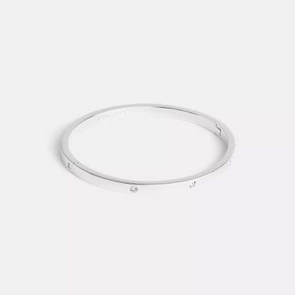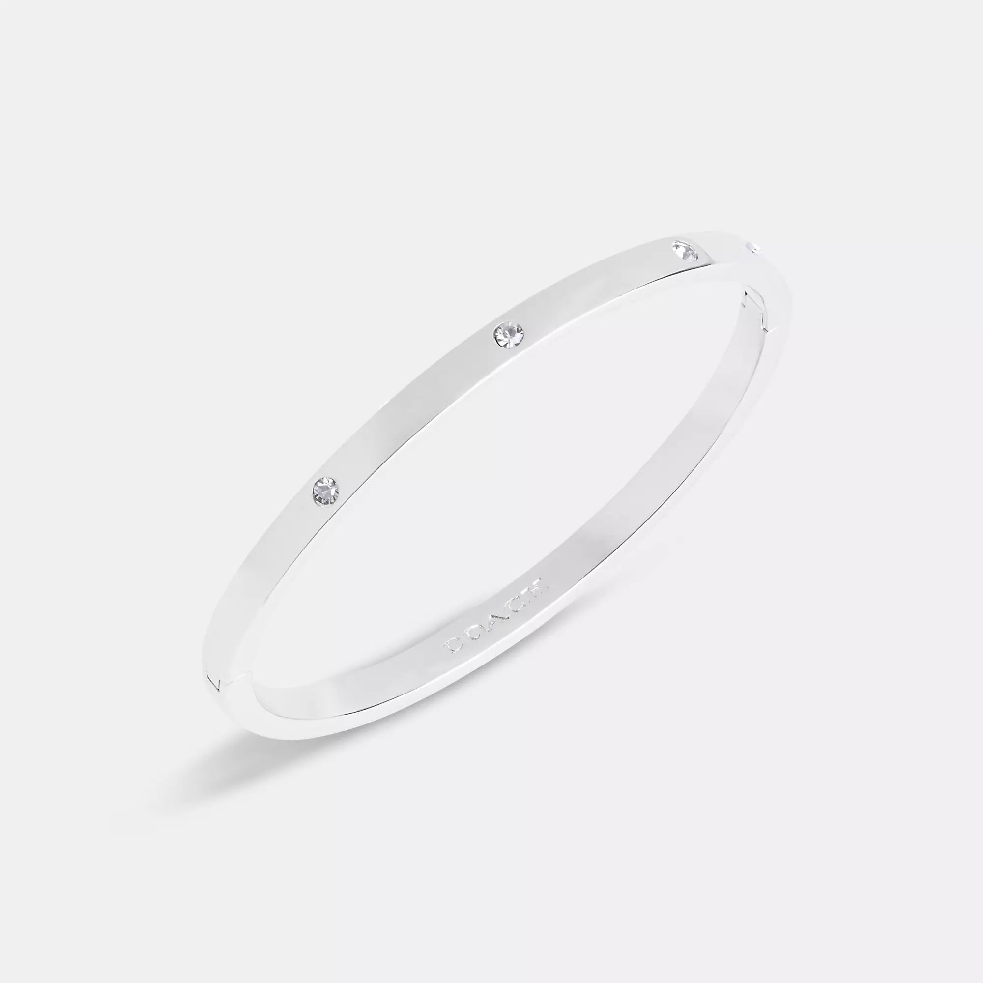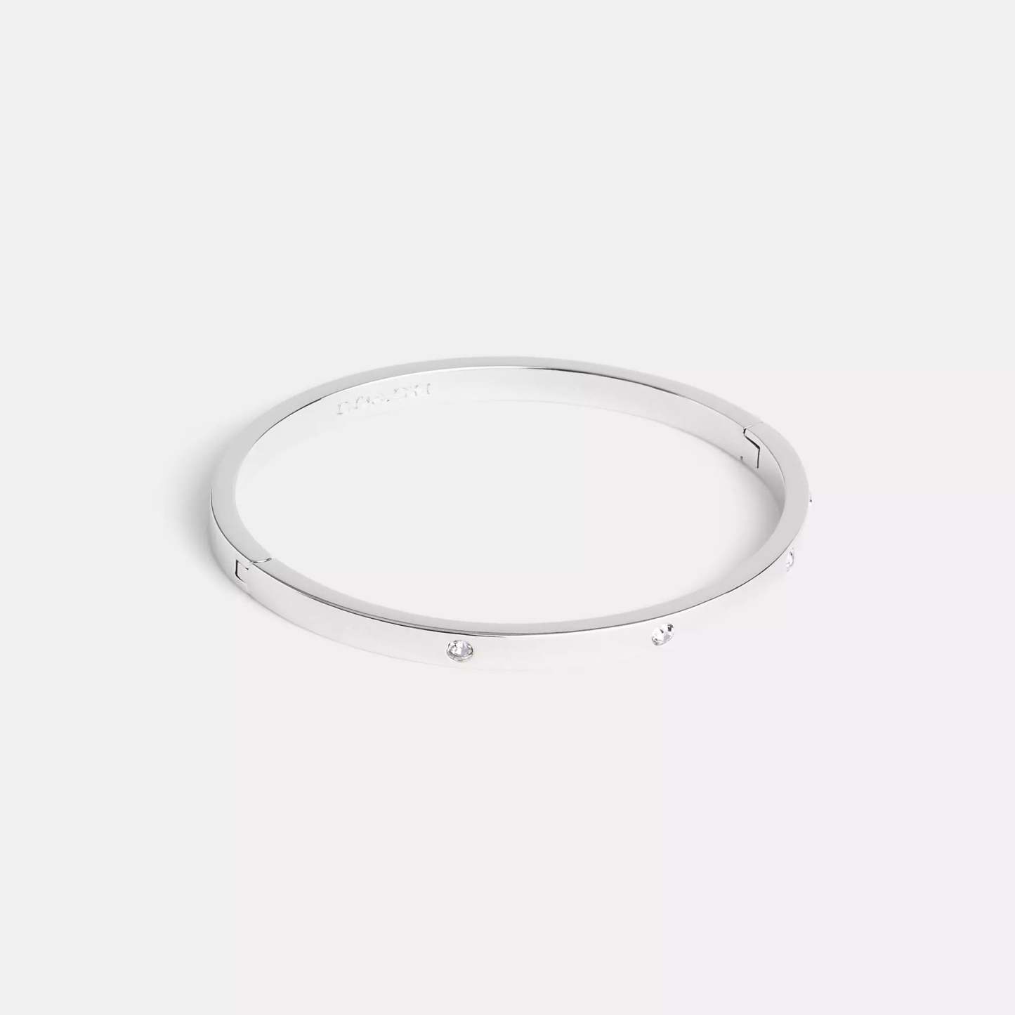 Plated brass glass and cubic zirconia Pushlock closure Diameter - 2 1/4 (L) x 2 (H) Style No. CAD38 | Coach Outlet Stone Hinged Bangle - Grey