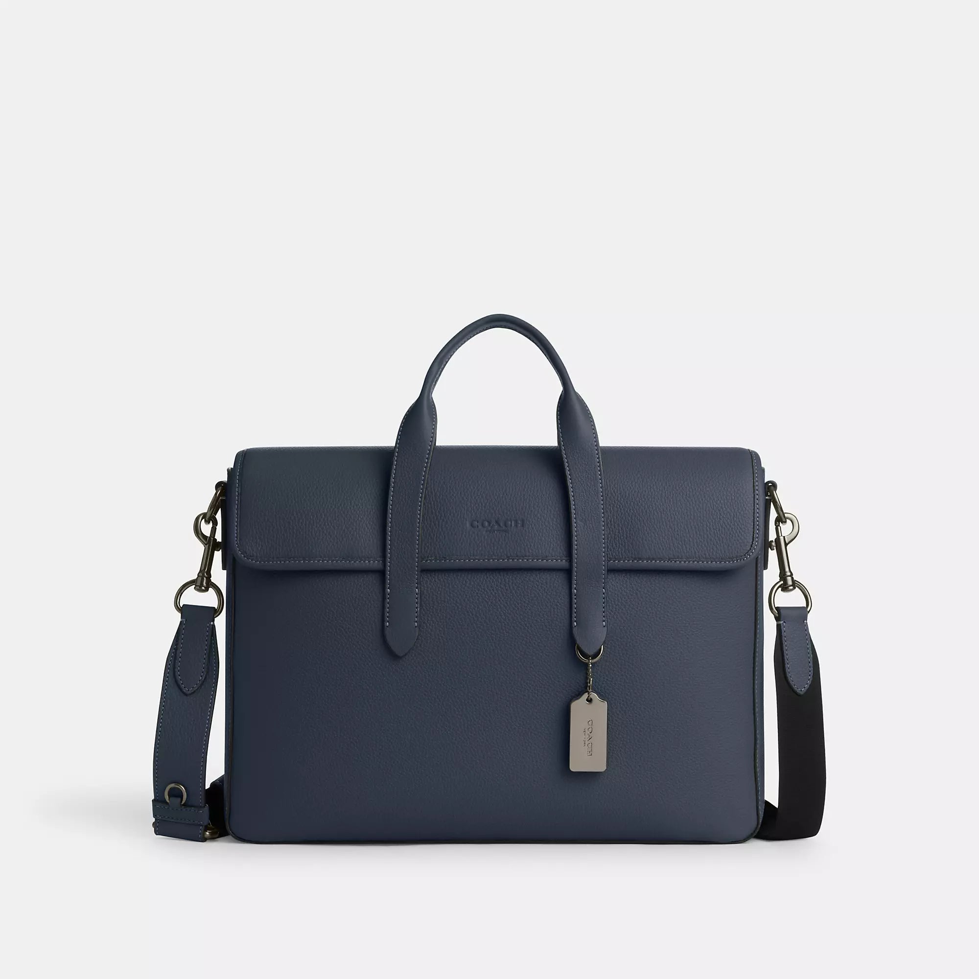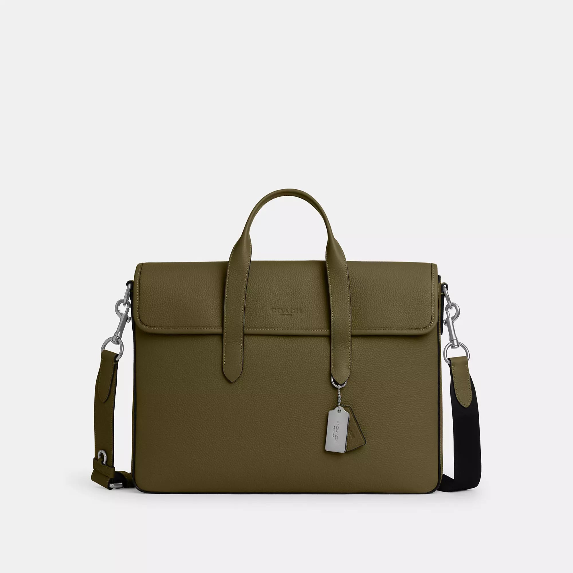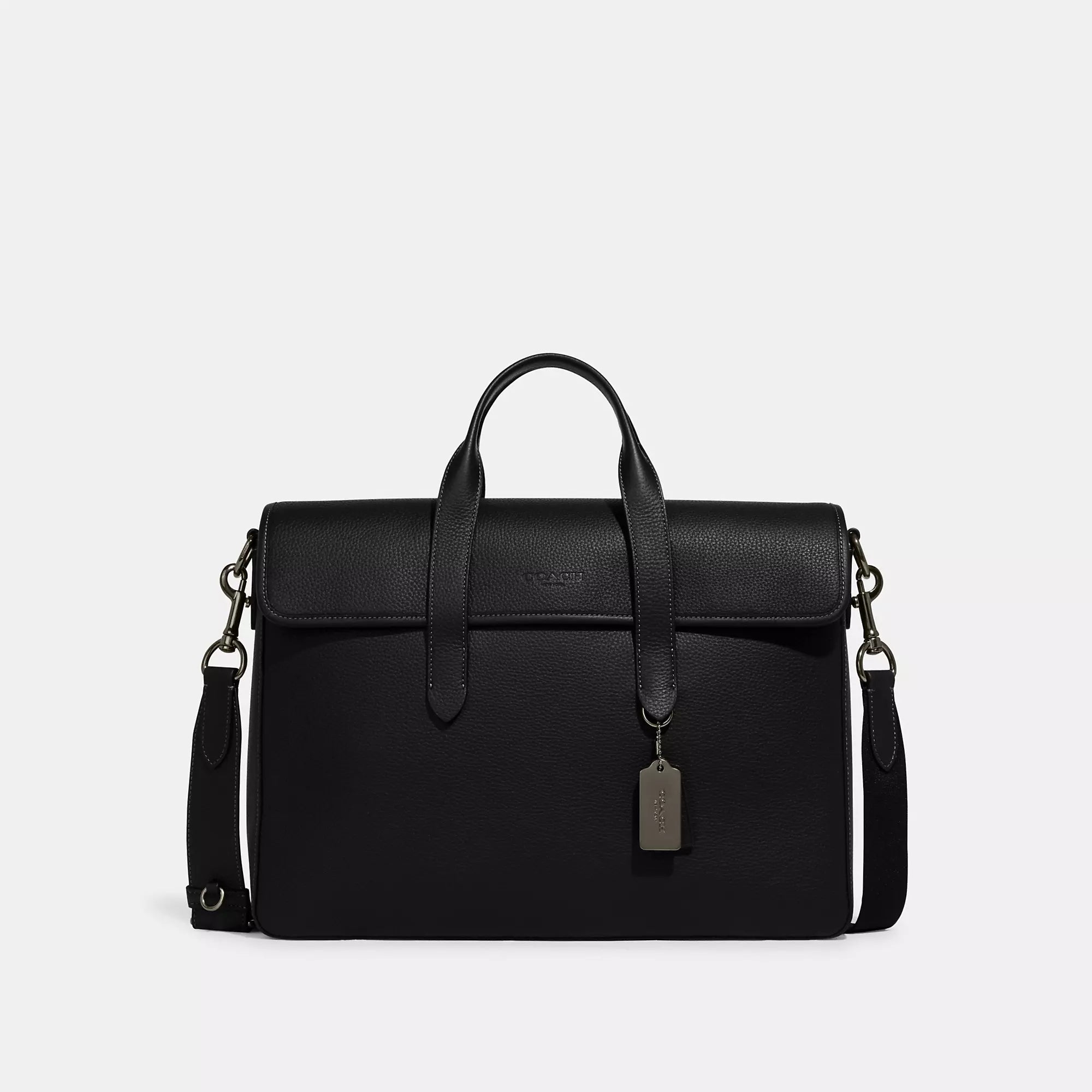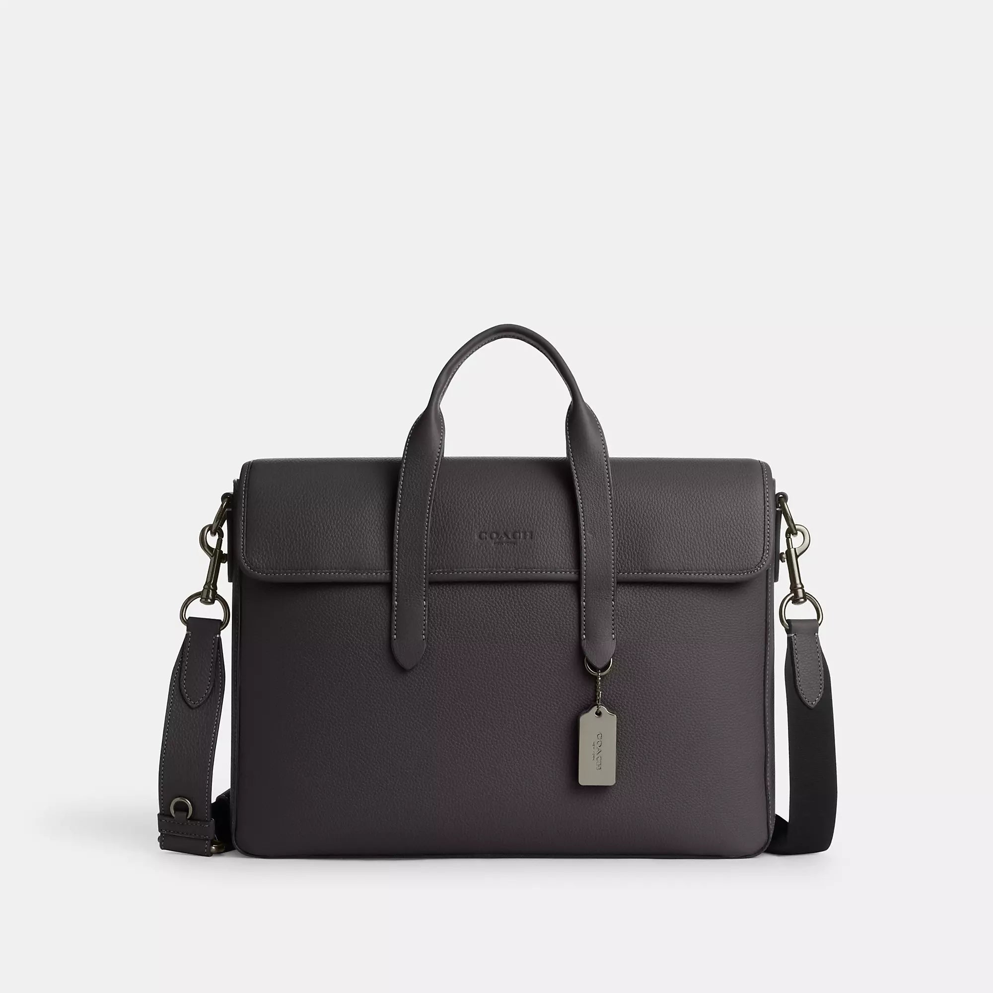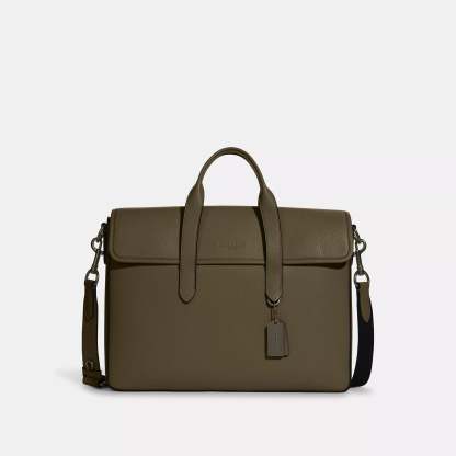 Refined pebble leather Inside zip and multifunction pockets Inside laptop sleeve with secure tab Magnetic snap closure fabric lining Handles with 4 3/4 drop Outside magnetic snap pocket Detachable strap with 25 drop for shoulder or crossbody wear 15 1/4 (L) x 11 (H) x 3 3/4 (W) Style No. C9875 | Coach Outlet Sullivan Portfolio Brief - Grey