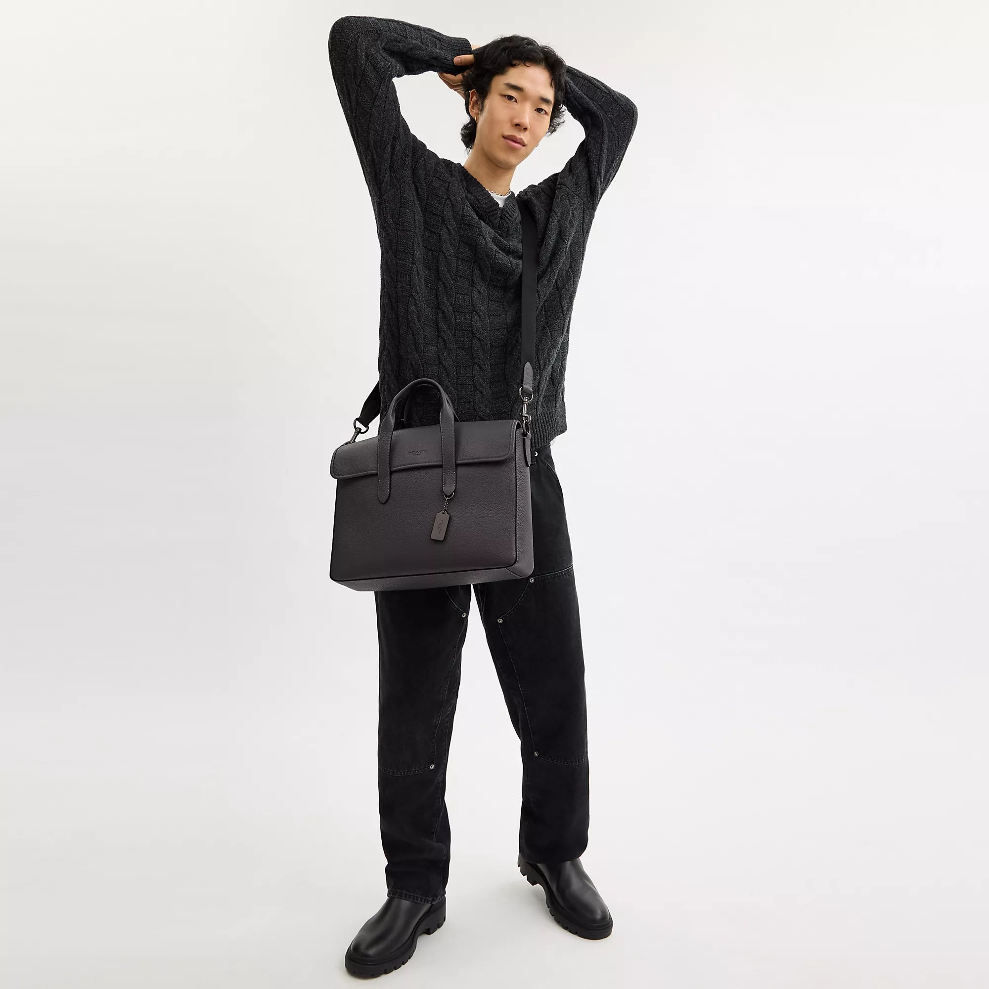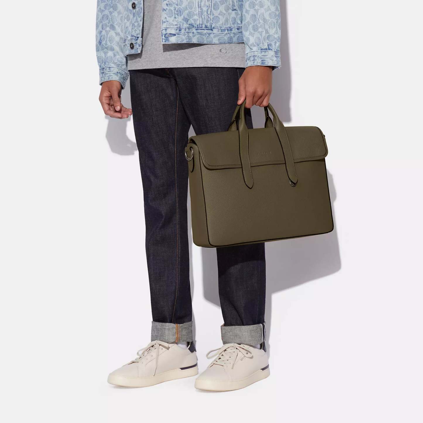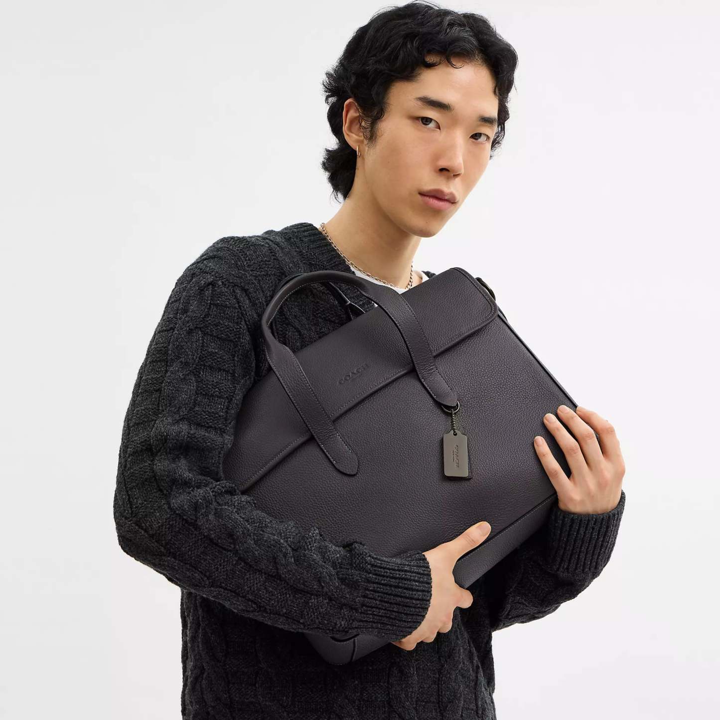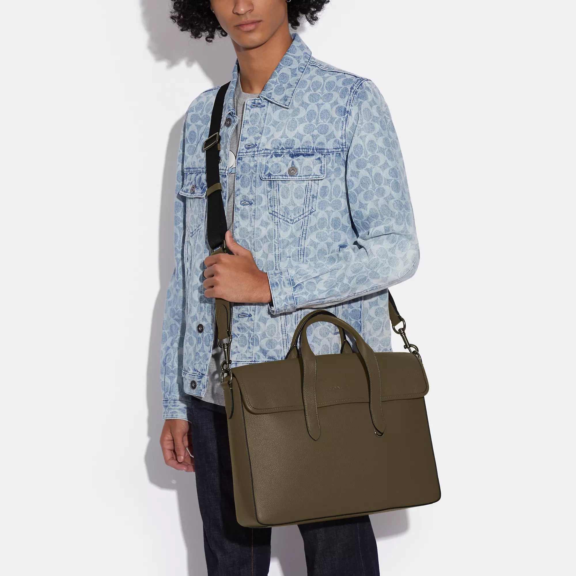 Refined pebble leather Inside zip and multifunction pockets Inside laptop sleeve with secure tab Magnetic snap closure fabric lining Handles with 4 3/4 drop Outside magnetic snap pocket Detachable strap with 25 drop for shoulder or crossbody wear 15 1/4 (L) x 11 (H) x 3 3/4 (W) Style No. C9875 | Coach Outlet Sullivan Portfolio Brief - Grey