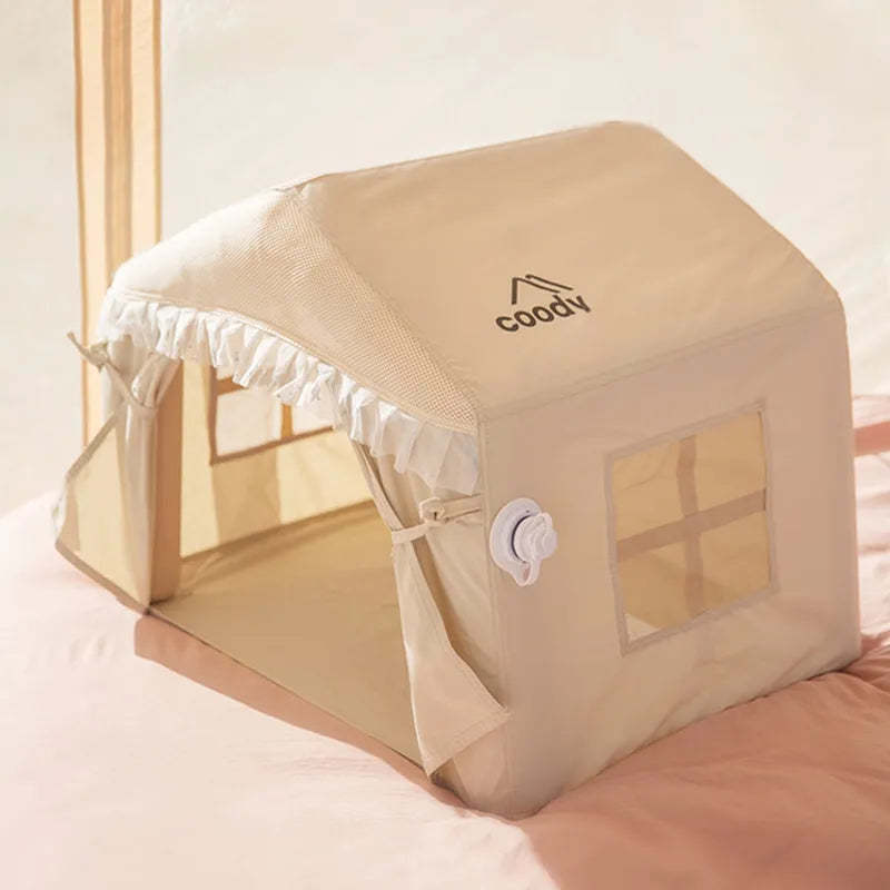 Portable pet tent for cozy comfort at home or on the go.