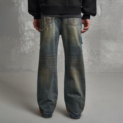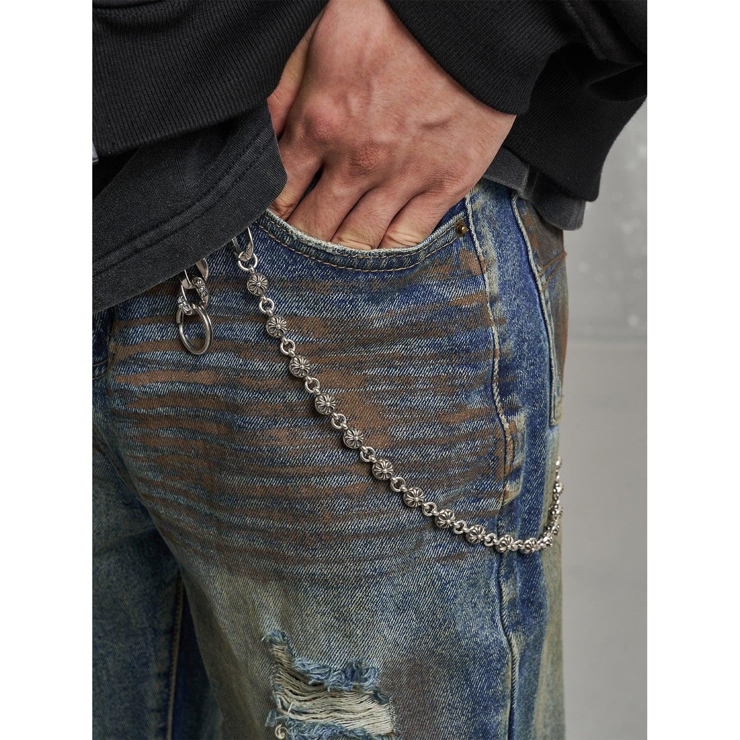 Crafted from premium denim, these jeans feature intentionally ripped details and a worn-in look, blending edgy streetwear with a touch of grunge style.