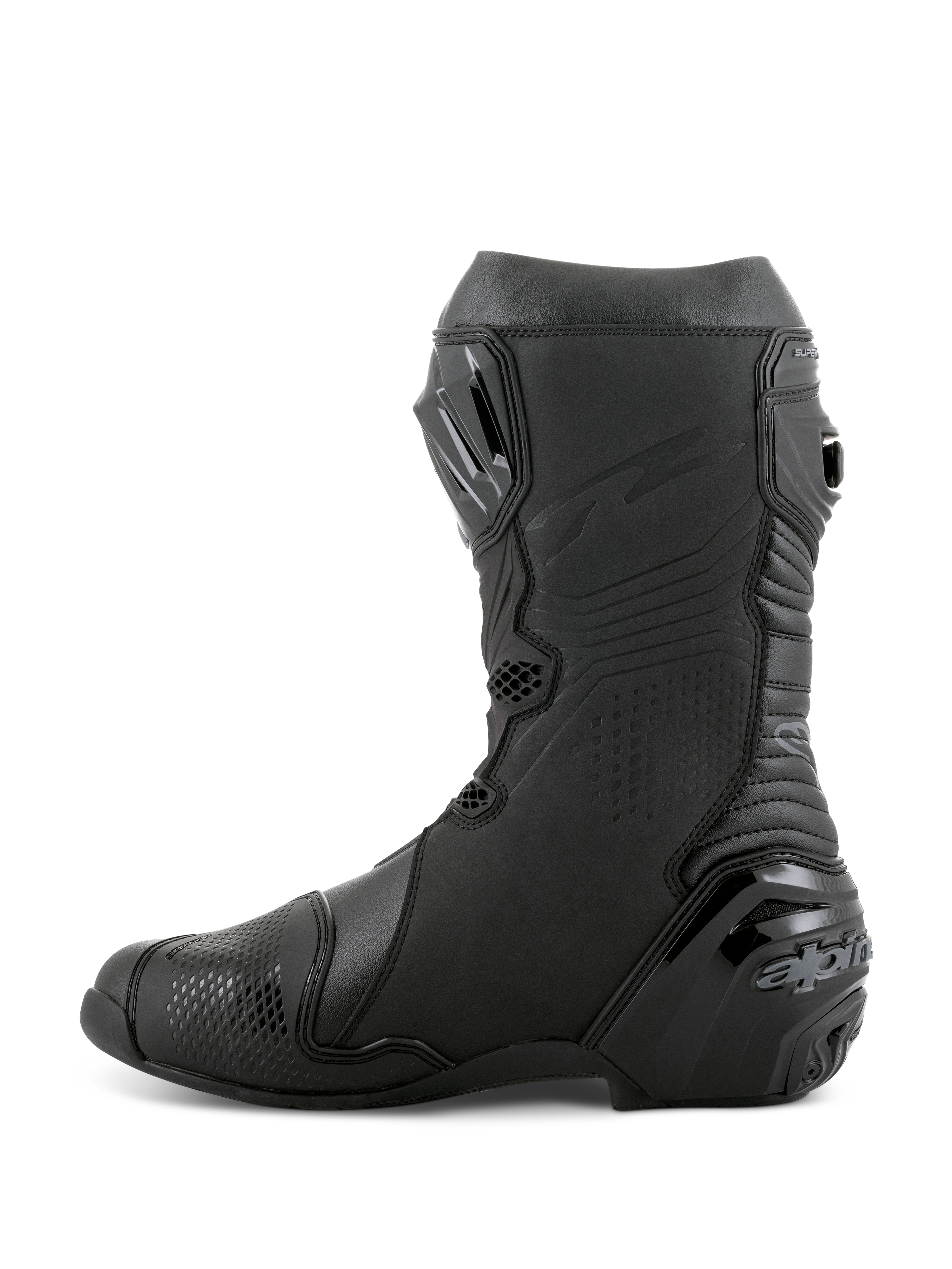 Almost every component of the Supertech R Boot, Alpinestars definitive racing boot as worn by a roster of champions past and present, has undergone a rigorous program of upgrades to sharpen its performance features even further. Featuring innovations derived using feedback from Alpinestars involvement in top flight racing, key elements include a newly redesigned front flex area, a redesigned rear bellow, a redesigned top gaitor, a new shifter and shin plate, a new shin slider and a new inner bootie, all of which enhance the comfort, protection and the performance of this boot to a new class-leading high.