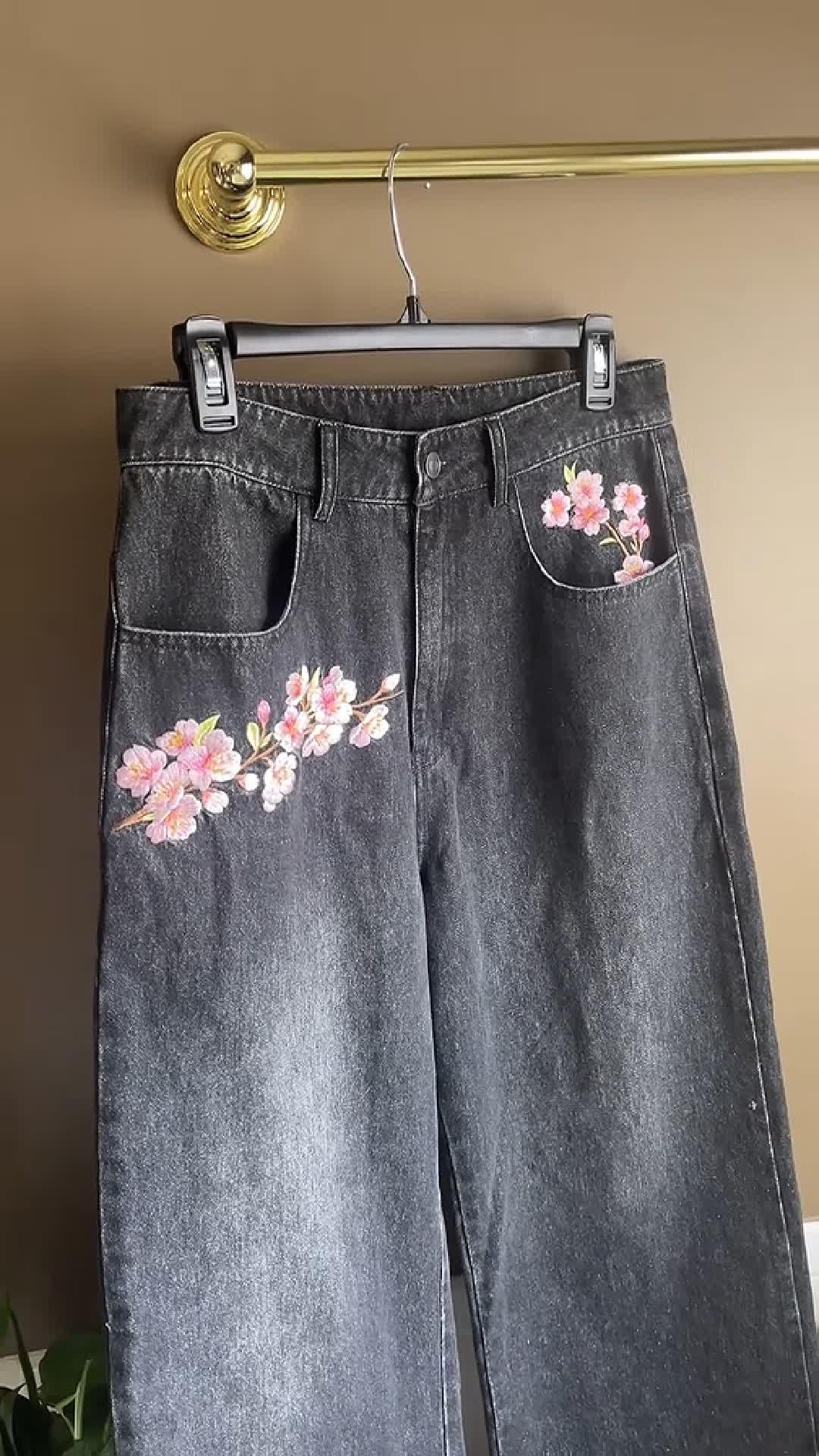 Cherry Blossom Embroidered Jeans