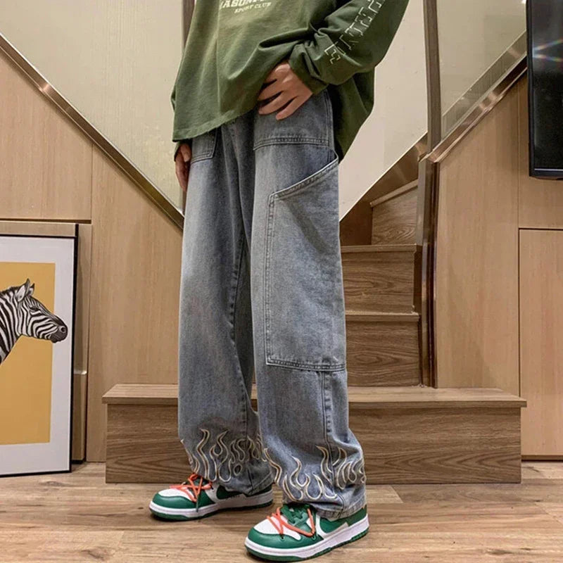 PLAID‑LINED DISTRESSED JEANS