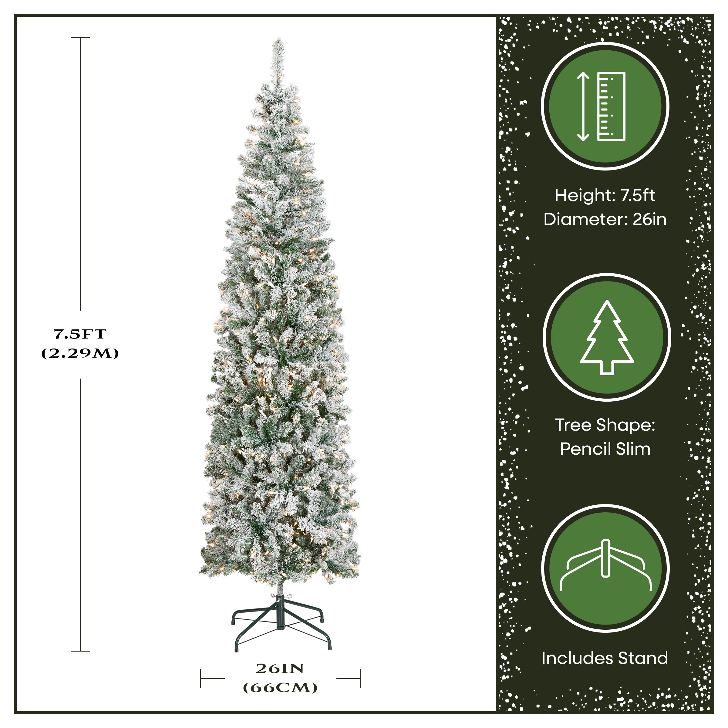 7.5 ft. Pre-Lit Acacia Pencil Slim Flocked Tree with Clear Lights, Plug-In