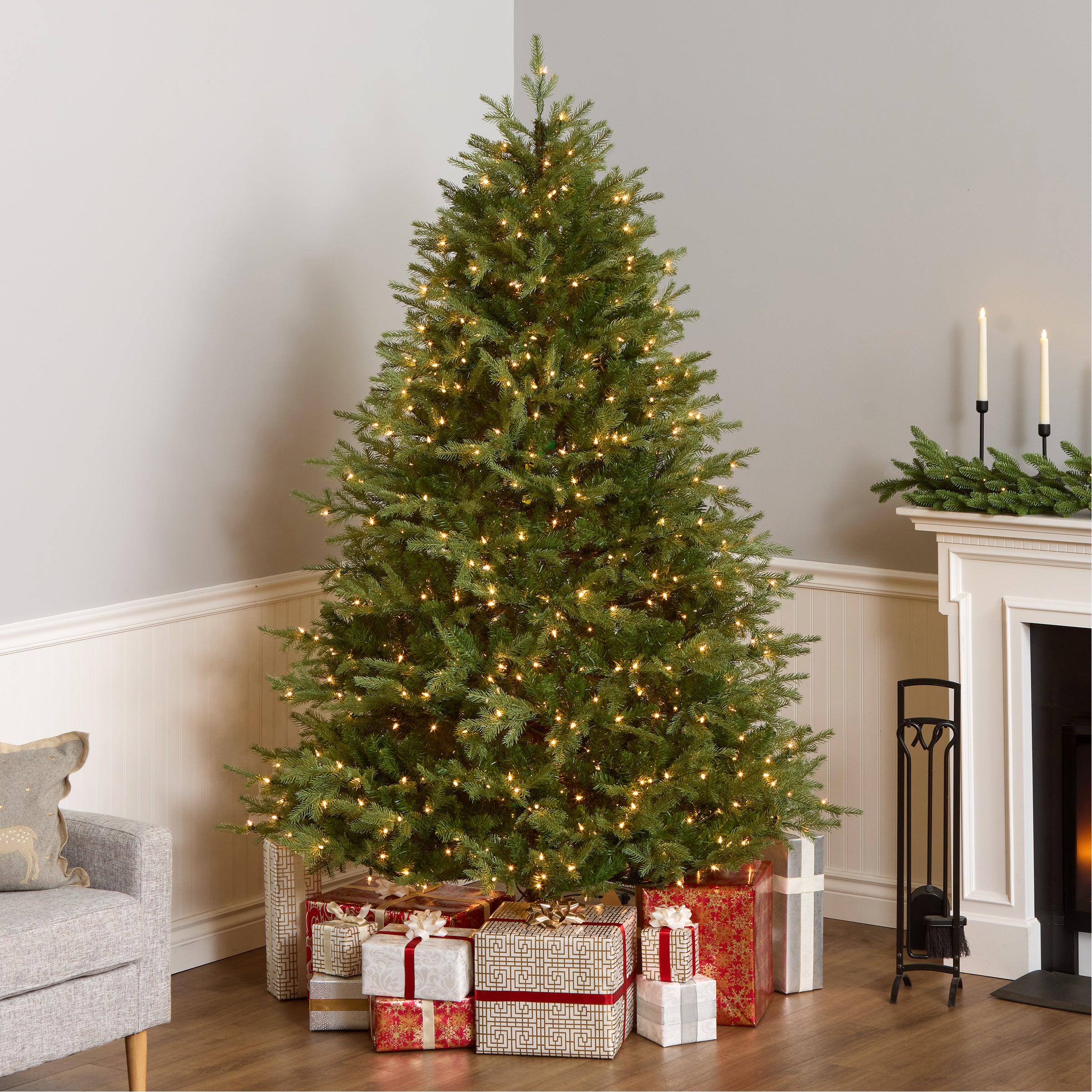 Celebrate the spirit of the season with the National Tree Company 7.5ft Prelit Nordic Spruce Medium Artificial Christmas Tree- a stunning medium-body centerpiece perfect for main living areas such as living rooms. Standing 7.5 feet tall with a medium profile, this tree features advanced Feel Real® branch tip technology that replicates the texture and depth of a real evergreen. Pre-strung with 900 clear UL-listed incandescent lights that remain illuminated even if a bulb goes out, it delivers a consistent warm glow from top to bottom. With hinged branch construction, setup is effortless- branches drop down for shaping and fold back up for compact off-season storage. Built using fire-resistant, hypoallergenic materials and supported by a durable metal stand, this artificial tree combines dependable performance with timeless holiday aesthetics. For more than 60 years, National Tree Company has been the trusted leader in artificial greenery and seasonal décor, helping families create joyful holiday memories year after year.