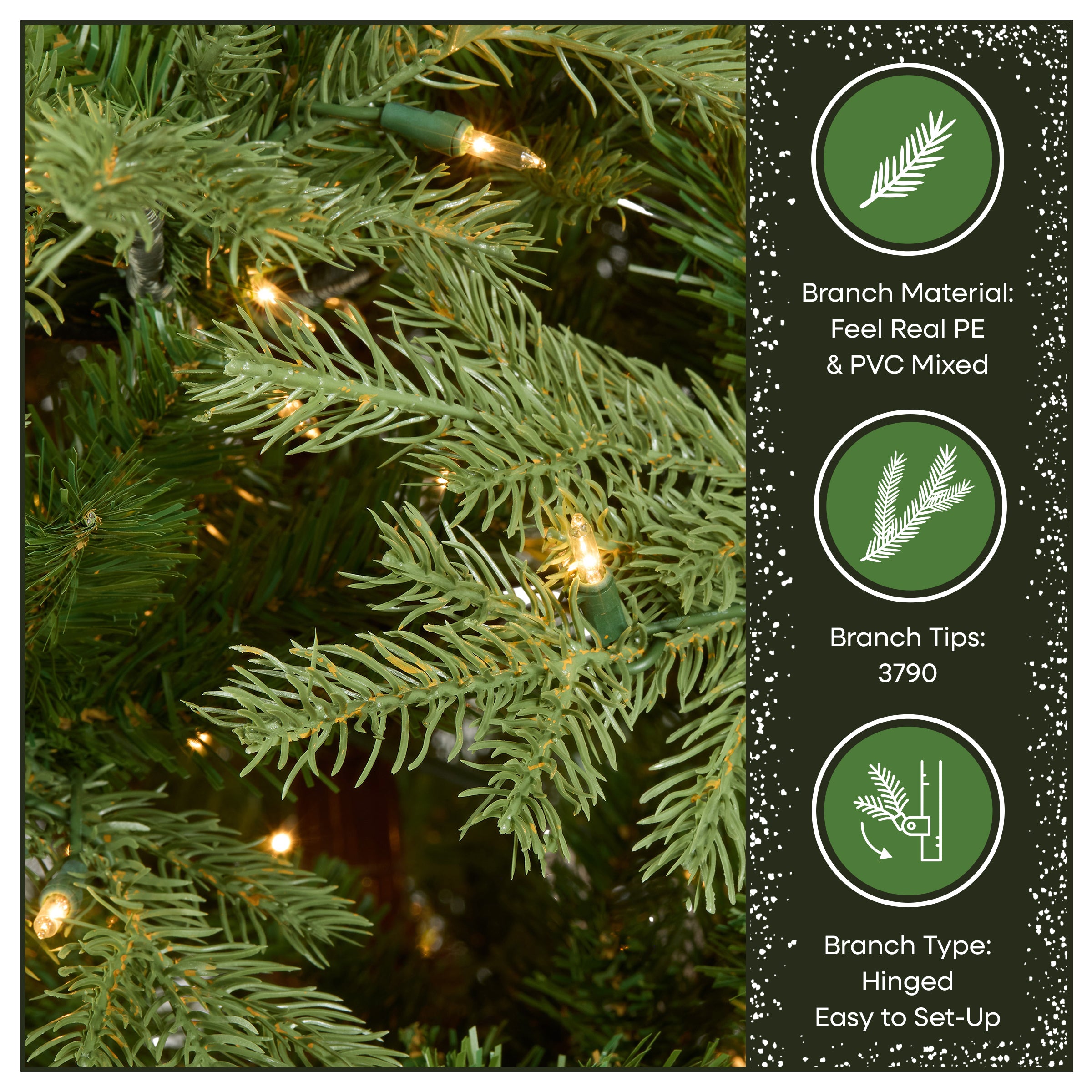 - ARTIFICIAL CHRISTMAS TREE: 7.5 foot Christmas tree with lights with a 60 inch diameter and crafted with 3,790 Feel Real® PE and PVC branch tips for a real look and feel, perfect to hang ornaments