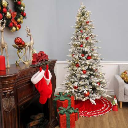7 ft. Pre-Lit Snowy Calton Pine Tree with LED Lights, Plug-In