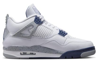 Introducing the Air Jordan 4 Retro White Midnight Navy — the perfect blend of classic and modern. Built for quality and comfort, this timeless sneaker boasts a durable upper constructed from white leather, equipped with black support Wings and Jumpman branding on the heel tab. Woven tongue tags feature an additional Jumpman icon in bright crimson for a fresh update. The cushioning midsole combines two-tone polyurethane with encapsulated Air technology in the forefoot and a visible unit in the heel to give you superior lightweight performance. With its midnight navy elements, light smoke grey detailing, and signature Jumpman styling, this iconic silhouette is sure to kick your collection up a notch. Add timeless style to any outfit with the Air Jordan 4 Retro White Midnight Navy — for a limited time only.