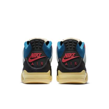 As a sequel to the Union x Nike Air Jordan 1s, the Union x Air Jordan 4 capsule is extremely hyped. The "Off Noir" offering features a black nubuck upper, but is far from being understated. While the signature mesh, eyelets and translucent ankle straps come in white, the NIKE brandings are in bright red. To take the pair to the next level, a vibrant blue ankle collar and dark cream midsole add more colors to the mix.