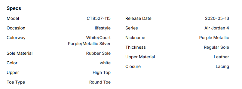 Aithtr Jordthtan 4 Retro 'Purple Metallic'