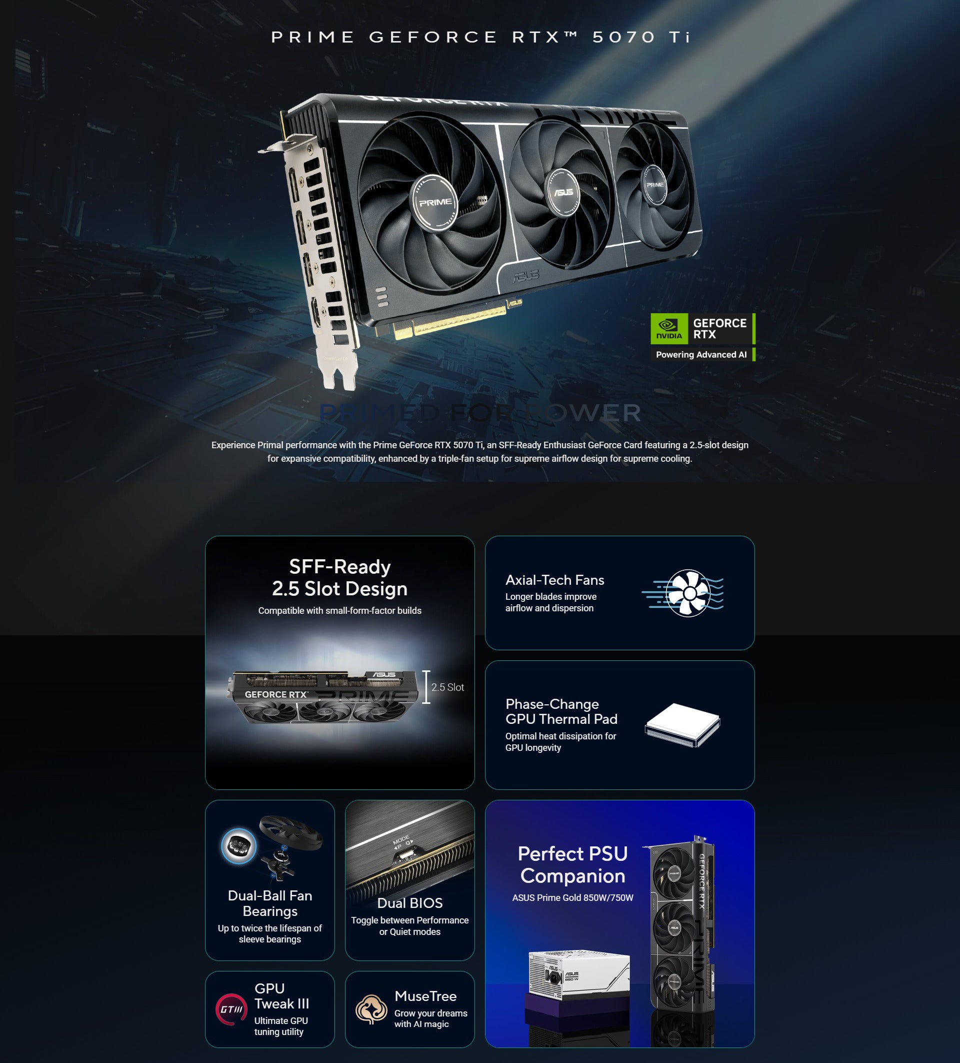 Asus Prime GeForce RTX 5070 Ti OC 16GB GDDR7 Graphics Card