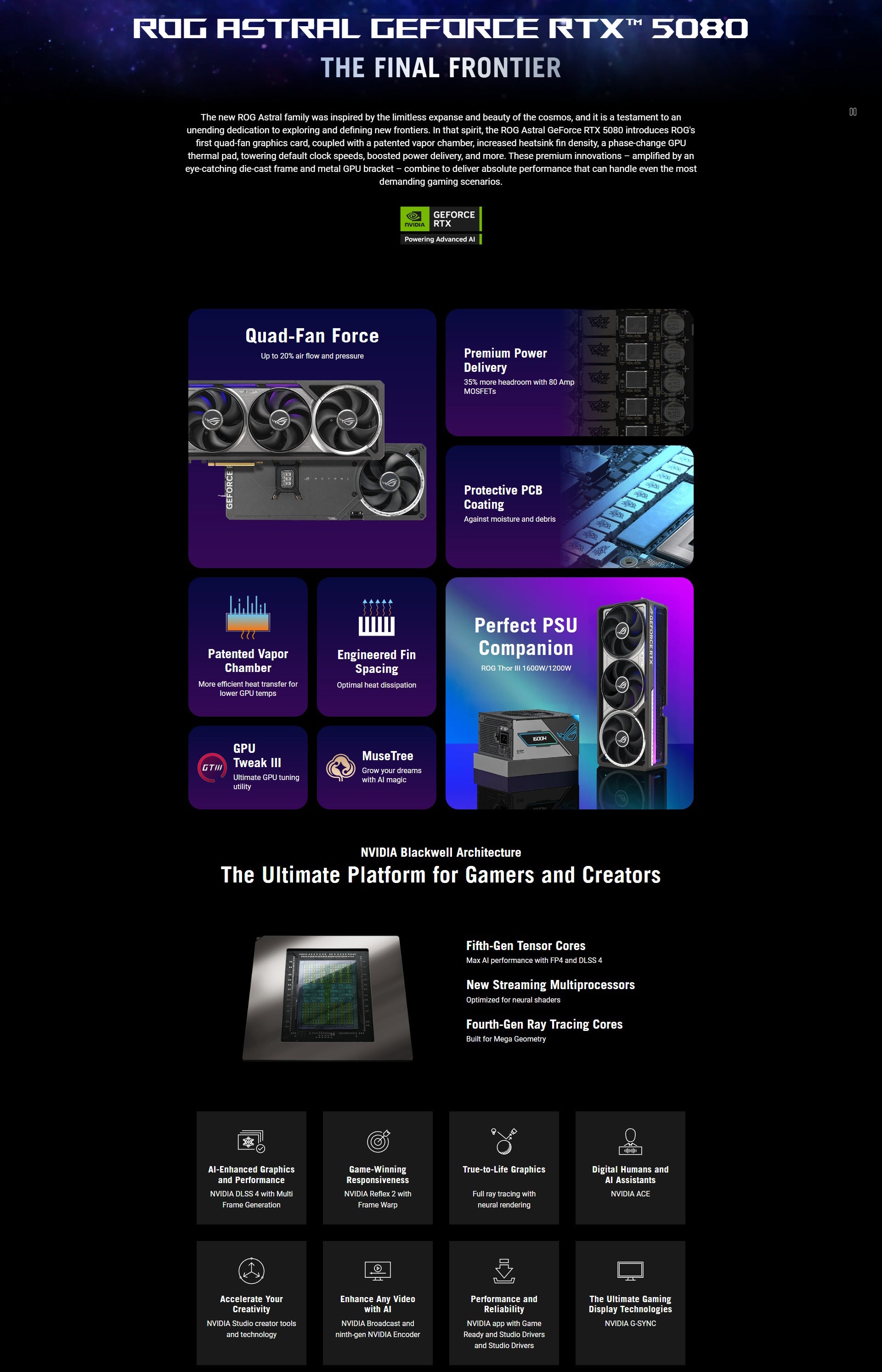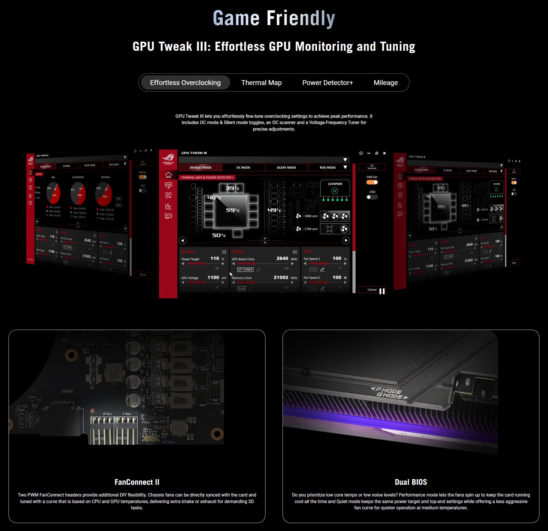 | Software | ASUS GPU Tweak III & MuseTree & GeForce Game Ready Driver & Studio Driver: please download all software from the support site. |