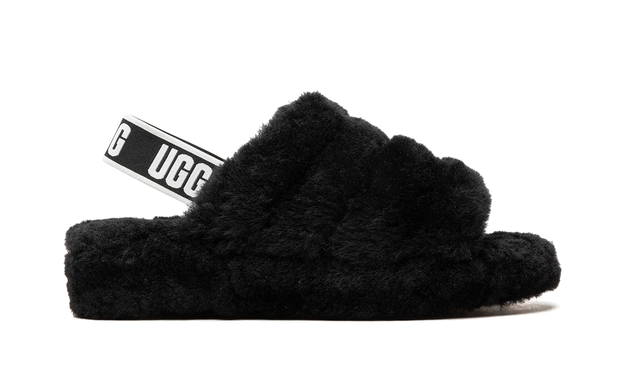 Step into cloud-like comfort with the UGG AUSTRALIA FLUFF YEAH WMNS "Black" slipper-sandal. This iconic hybrid, blending the coziness of a slipper with the practicality of a sandal, wraps your feet in luxurious, soft fluff. The plush material keeps you feeling pampered, while the secure elastic heel strap, featuring bold UGG branding, ensures a snug fit. It's the perfect statement piece, making this versatile shoe ready for relaxed indoor lounging or a stylish outdoor errand run. Treat your feet to the ultimate in effortless, cozy fashion.
