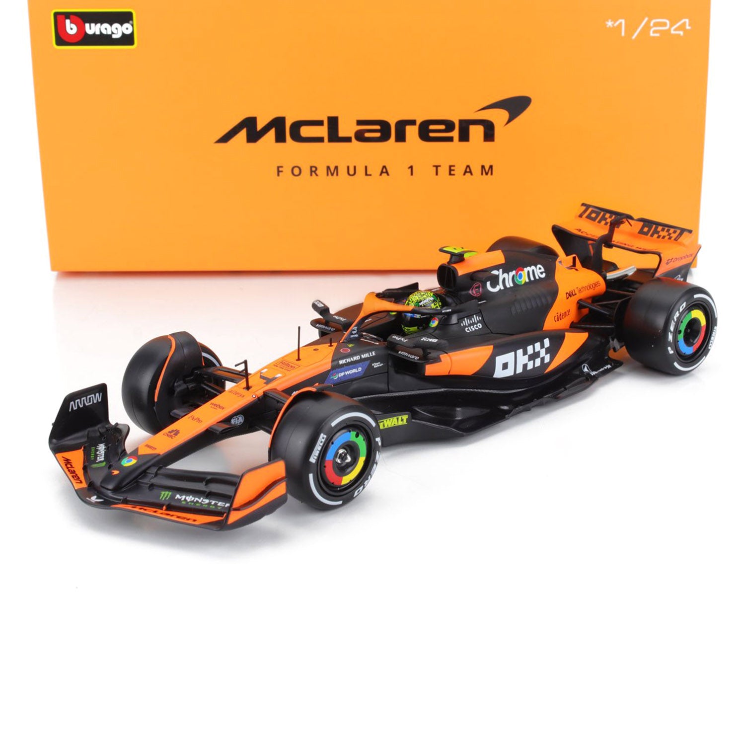 Celebrate a defining moment in Formula 1 with this 1:24 scale model of Lando Norris’s McLaren MCL38, as driven to his first career victory at the 2024 Miami Grand Prix. Featuring race-specific details, a driver figure, and a display showcase, this special edition model by Bburago captures the excitement of Norris’s breakthrough win.