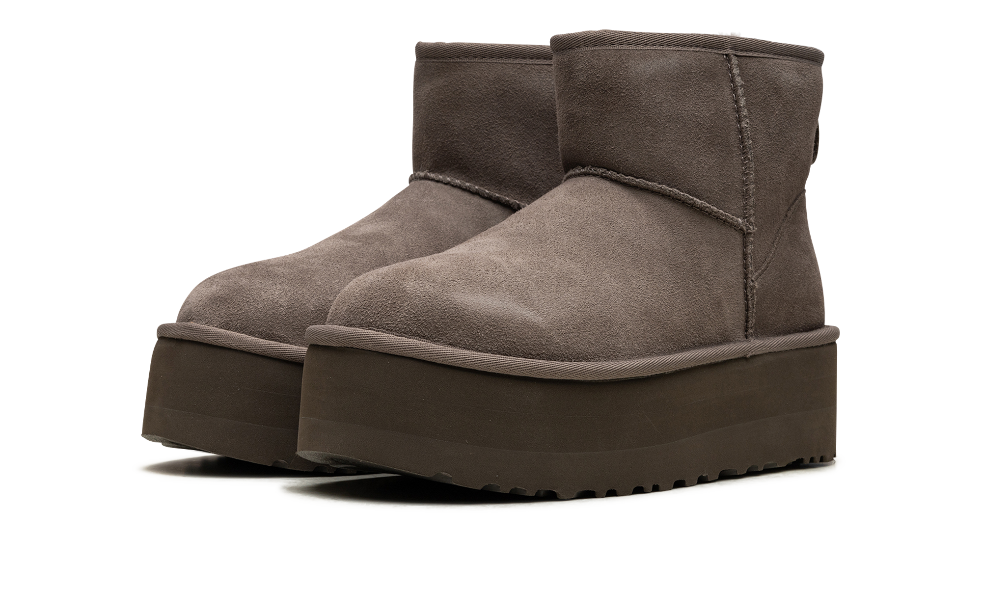 Elevate your cozy game with the UGG CLASSIC MINI PLATFORM WMNS "Smoke Plume", the fashionable Elevated Classic. These boots take the iconic mini silhouette and lift it with a chic 2-inch platform, giving you height without sacrificing comfort. They feature a soft suede upper, pre-treated for water resistance, and the ultra-plush UGGplush™ upcycled wool blend lining. The lightweight outsole provides all-day cushioning and traction for any outing.