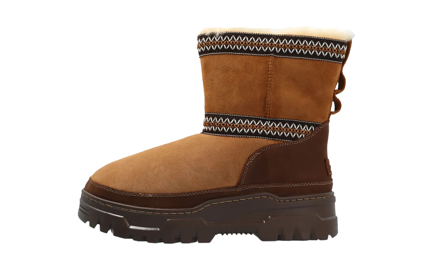 Step into luxurious warmth with the UGG Classic Mini Trailglazer Wmns "Chestnut". This outdoor-ready women's boot features a water-resistant suede upper and a bold, traction-enhanced outsole. The plush sheepskin lining ensures supreme comfort, making it a versatile choice for cozy wear or stylish, durable outings on any terrain.