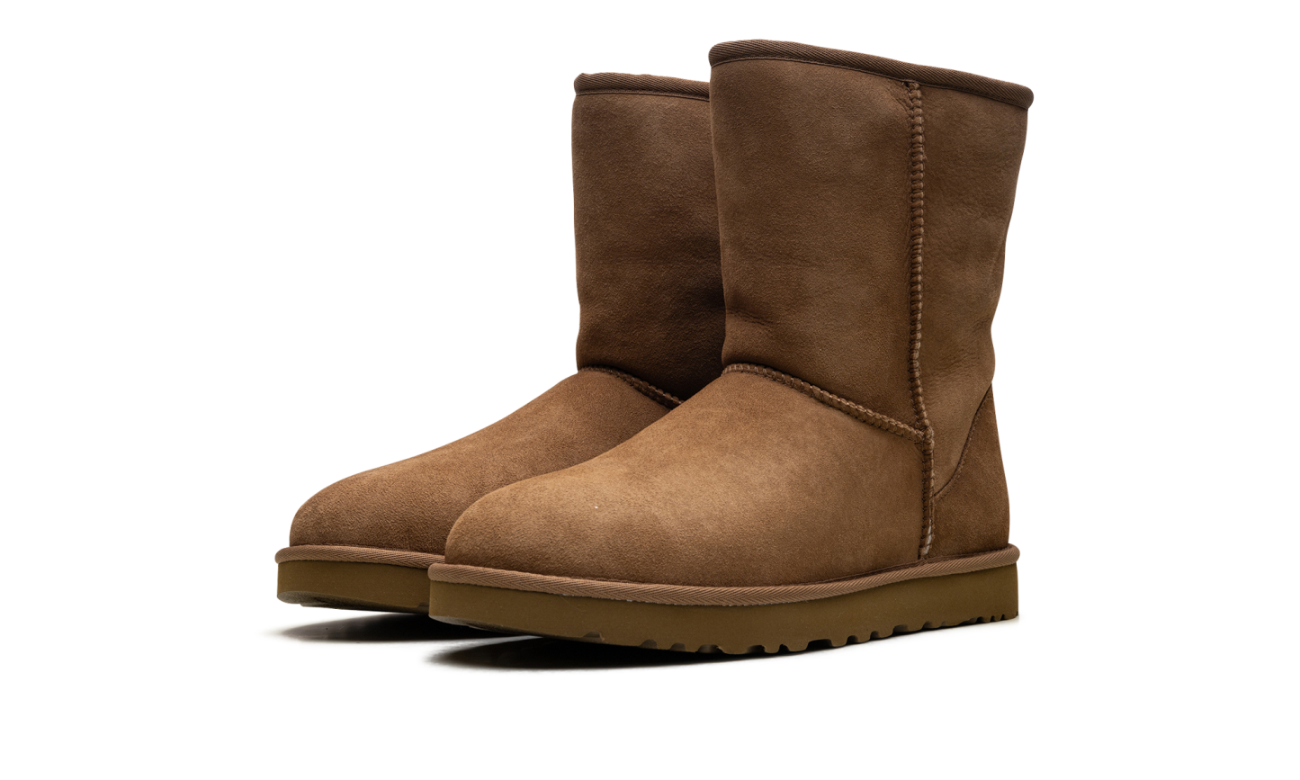Step into luxurious warmth with the UGG Classic Short II Boot Wmns "Chestnut". This women's boot features a soft suede upper, pre-treated to resist stains and water. The plush sheepskin lining and lightweight Treadlite outsole deliver supreme comfort, making it a versatile choice for cozy indoor wear or stylish, durable outings all season long.