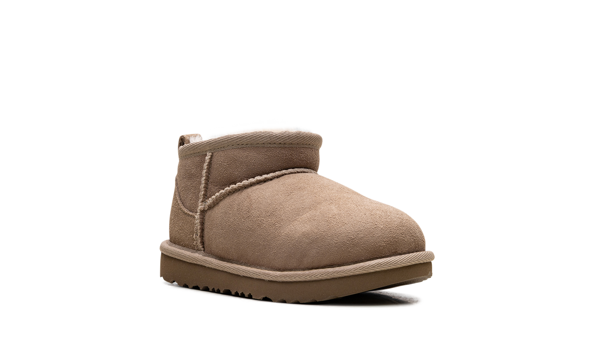 Watch their first steps turn stylish with the UGG Classic Ultra Mini Boot TD "Sand", affectionately known as the Tiny Trendsetter. This adorable toddler version features the same iconic comfort as the adult favorite, cut with an ultra-short shaft for easy on/off access. It boasts a rich suede upper and a warm, moisture-wicking UGGplush™ wool blend lining. The flexible, super-light Treadlite by UGG™ outsole is perfectly cushioned for growing feet and ready for every playful adventure.
