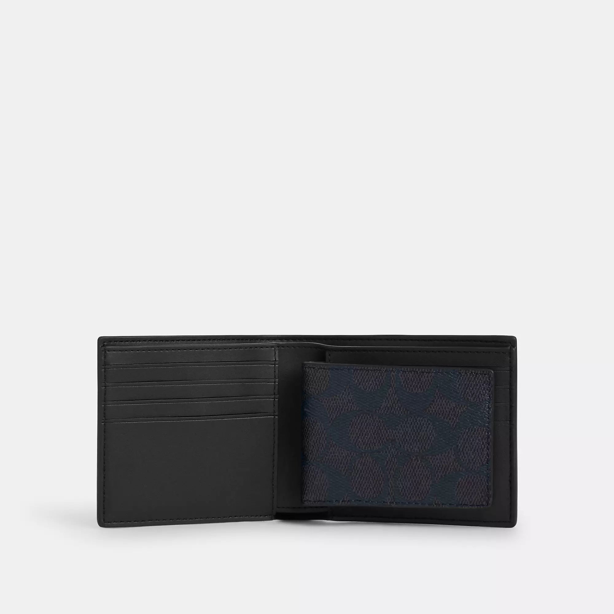 Signature coated canvas Eight credit card slots Full-length bill compartments Removable insert with ID window and two credit card slots 4 1/2 (L) x 3 3/4 (H) x 1 (W) Style No. CW380 | Coach Outlet 3 In 1 Wallet In Signature Canvas - Denim