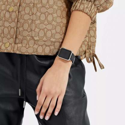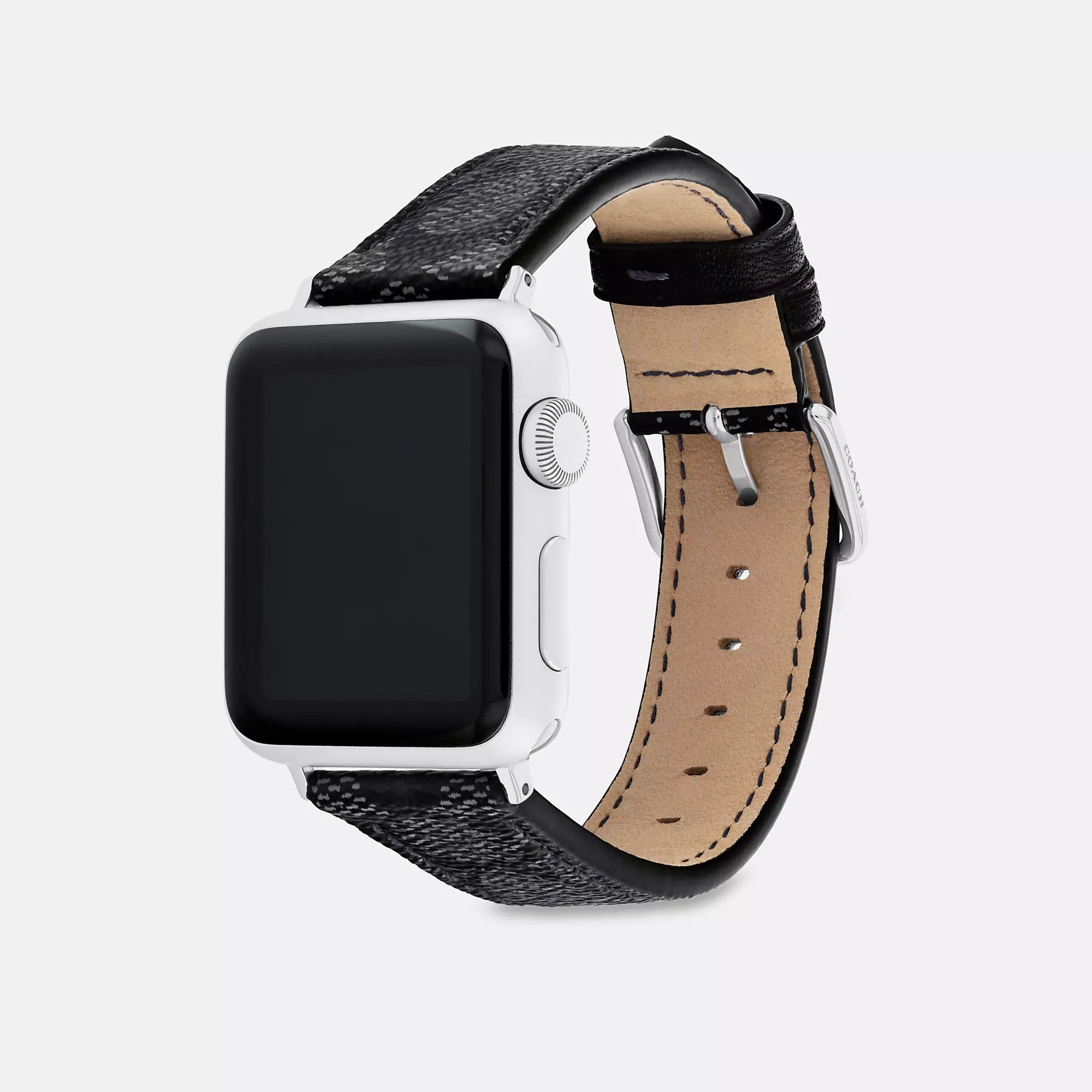 Signature coated canvas strap and stainless steel hardware For use with 38mm and 40mm Apple Watch® Buckle closure Apple Watch® is a trademark of Apple Inc. Style No. CJ147 | Coach Outlet Apple Watch® Strap, 38 Mm And 40 Mm - Grey