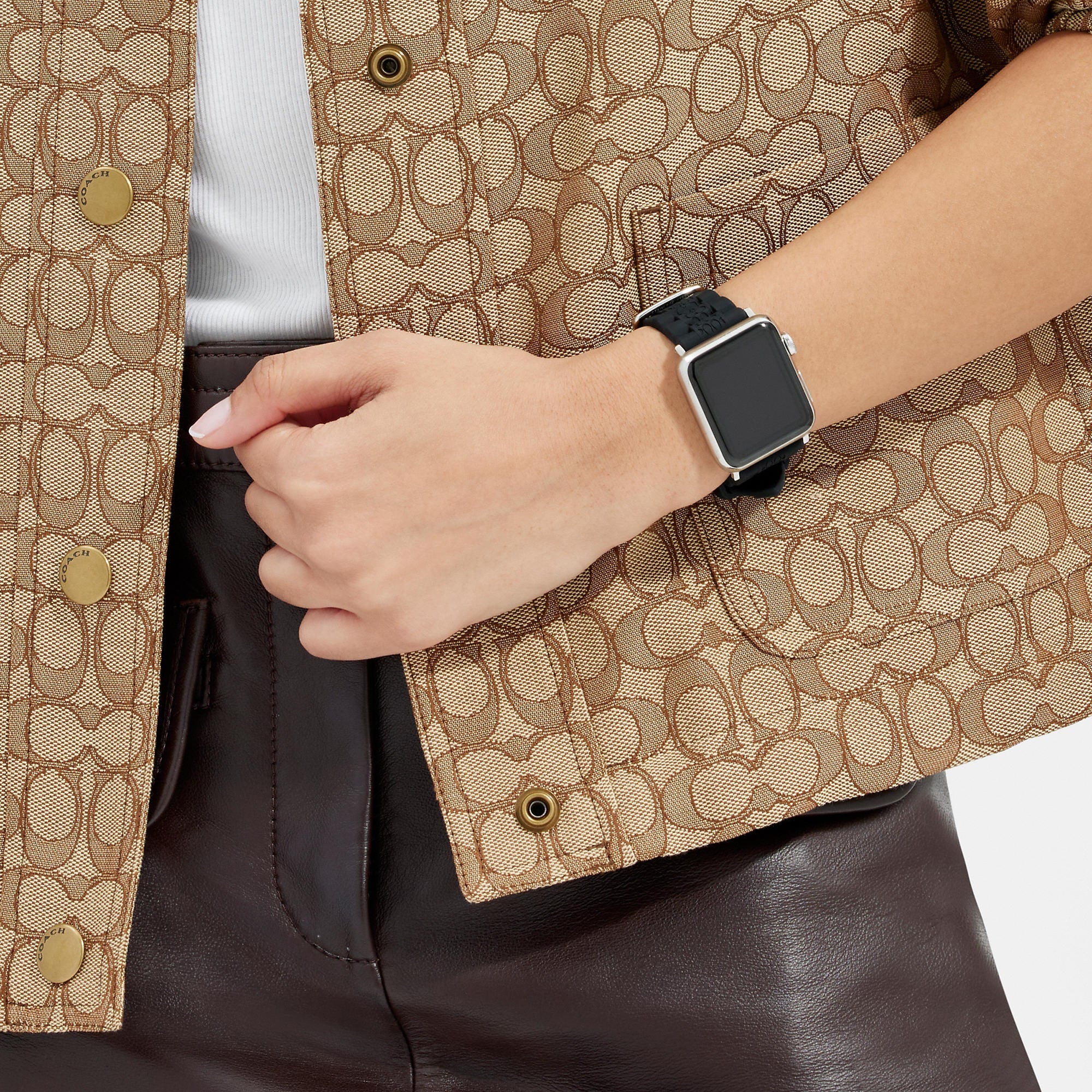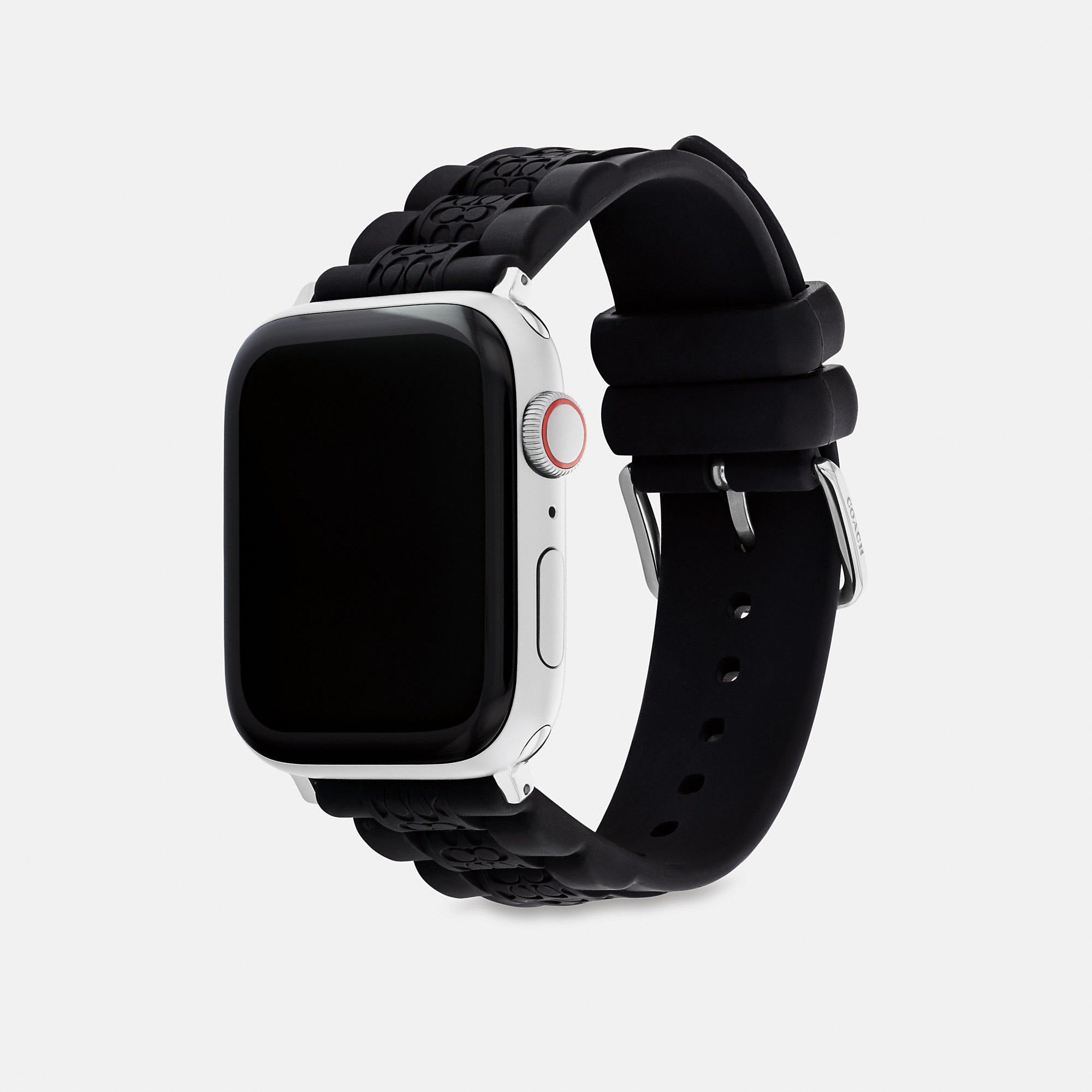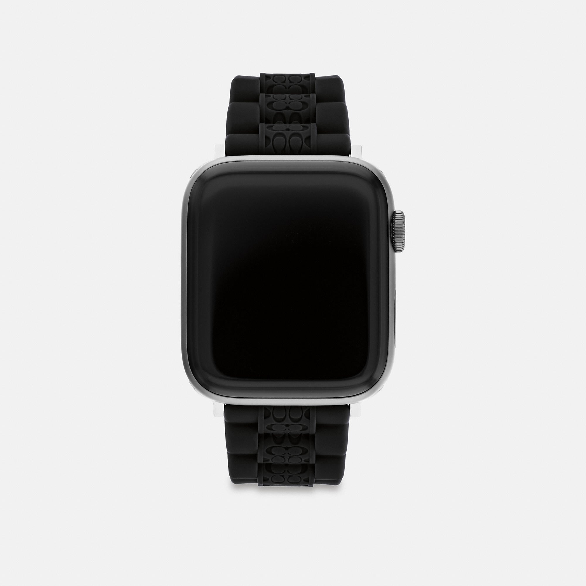 Rubber strap and stainless steel hardware For use with 42mm and 44mm Apple Watch® Buckle closure Apple Watch® is a trademark of Apple Inc. Style No. CI990 | Coach Outlet Apple Watch® Strap, 42 Mm And 44 Mm - Black