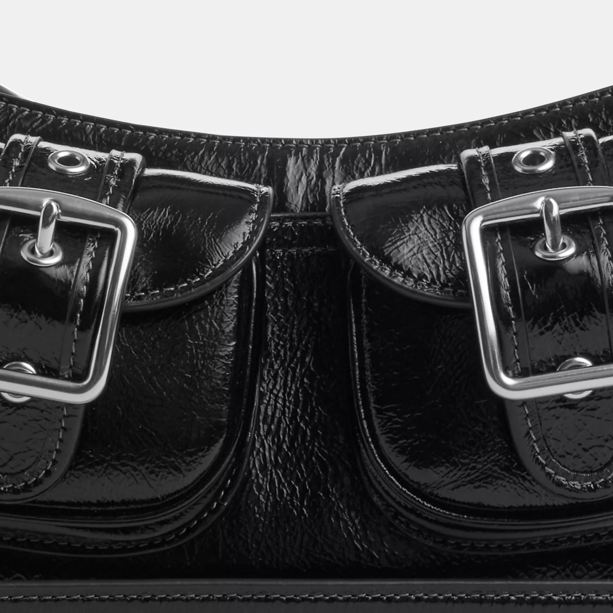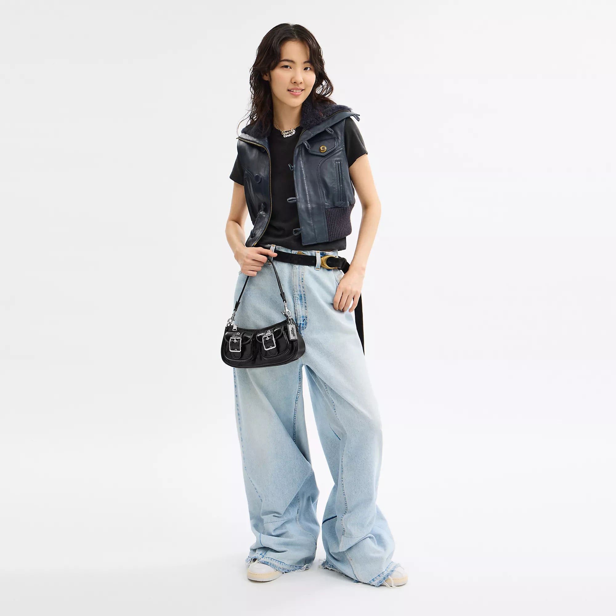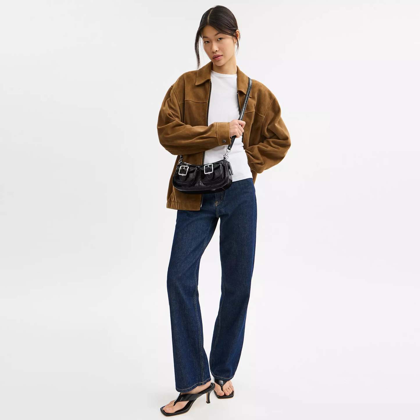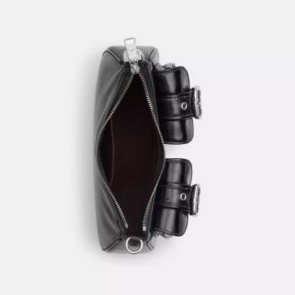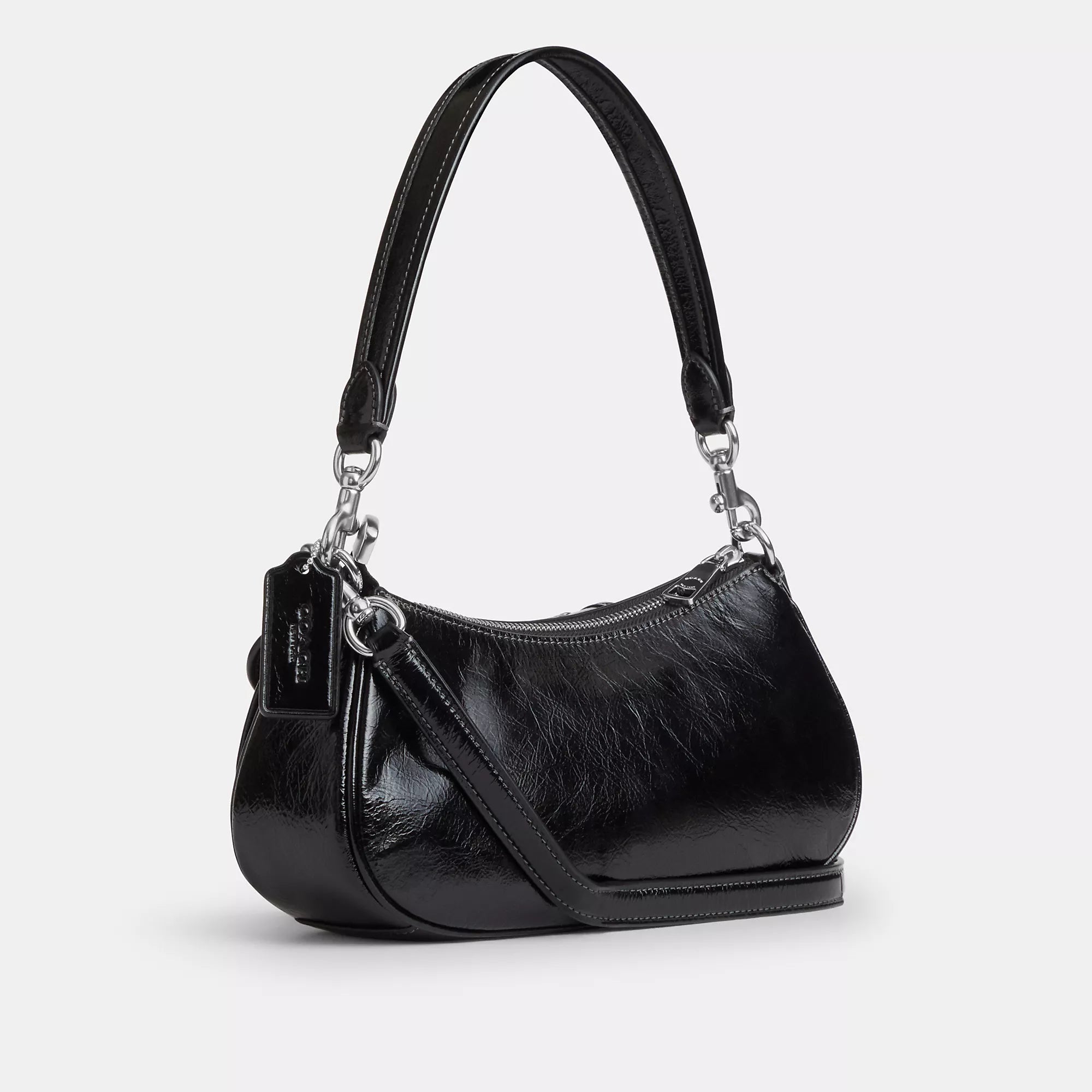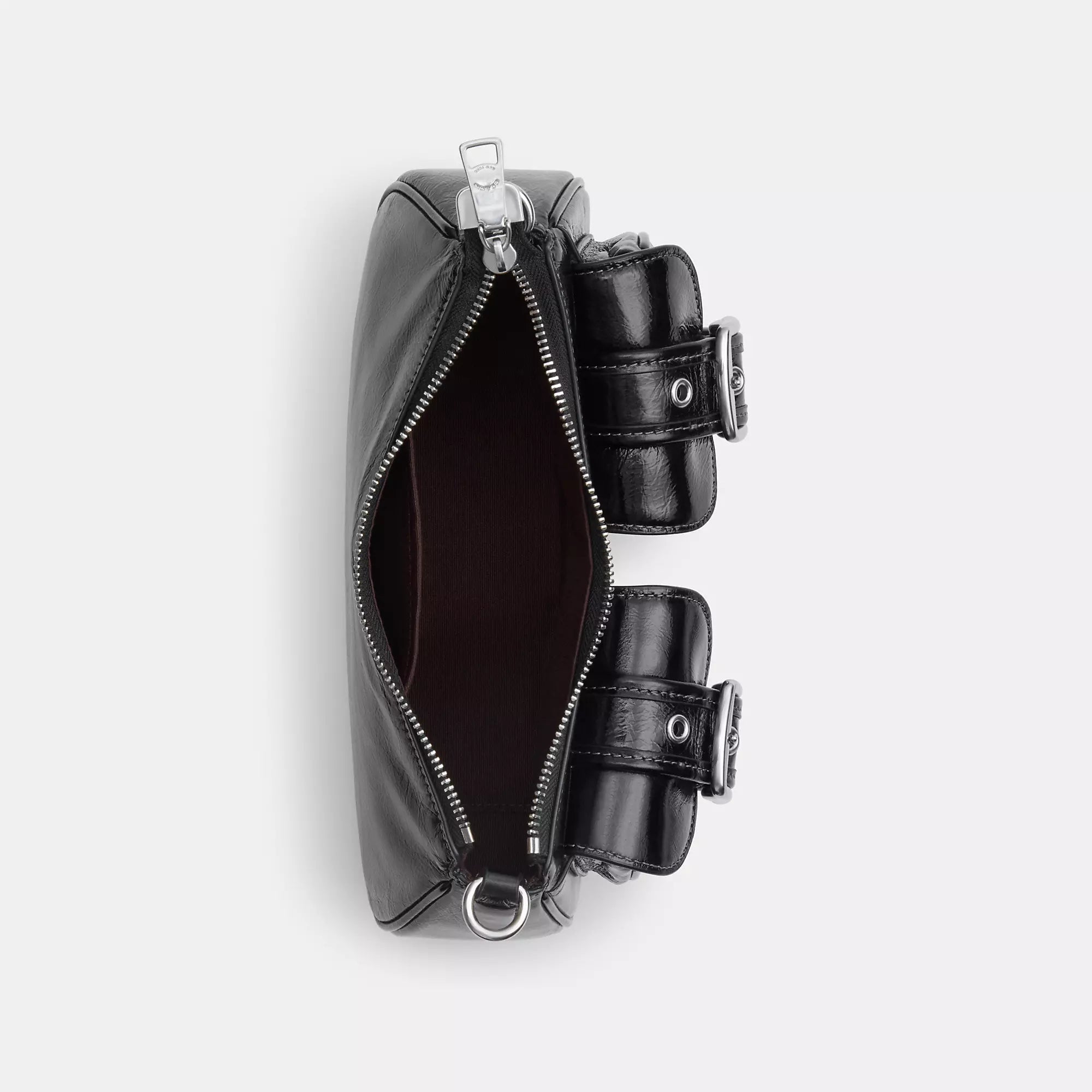 Shiny crinkle leather Inside multifunction pocket Zip-top closure fabric lining Detachable handle with 8 1/2 drop Outside snap pockets Detachable strap with 23 1/4 drop for shoulder or crossbody wear 10 (L) x 4 (H) x 2 3/4 (W) Style No. CBJ01 | Coach Outlet Ashton Bag - Black, Size - Small