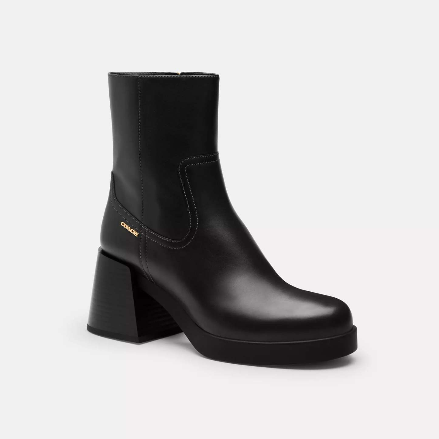 Leather upper Man-made leather lining and footbed Rubber outsole Pull on Shaft - 6 height 11 circumference 2 3/4 heel Style No. CCH17 | Coach Outlet Block Heel Boot - Black, Size - 7.5