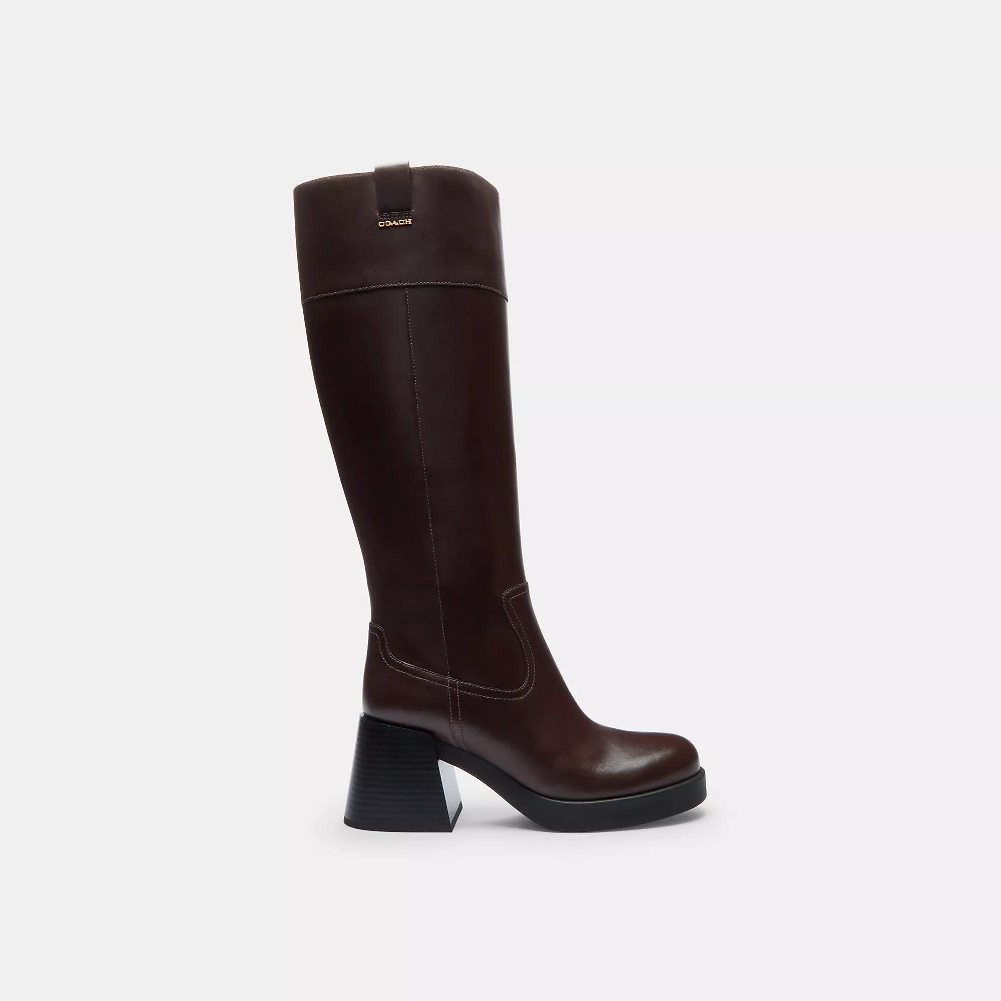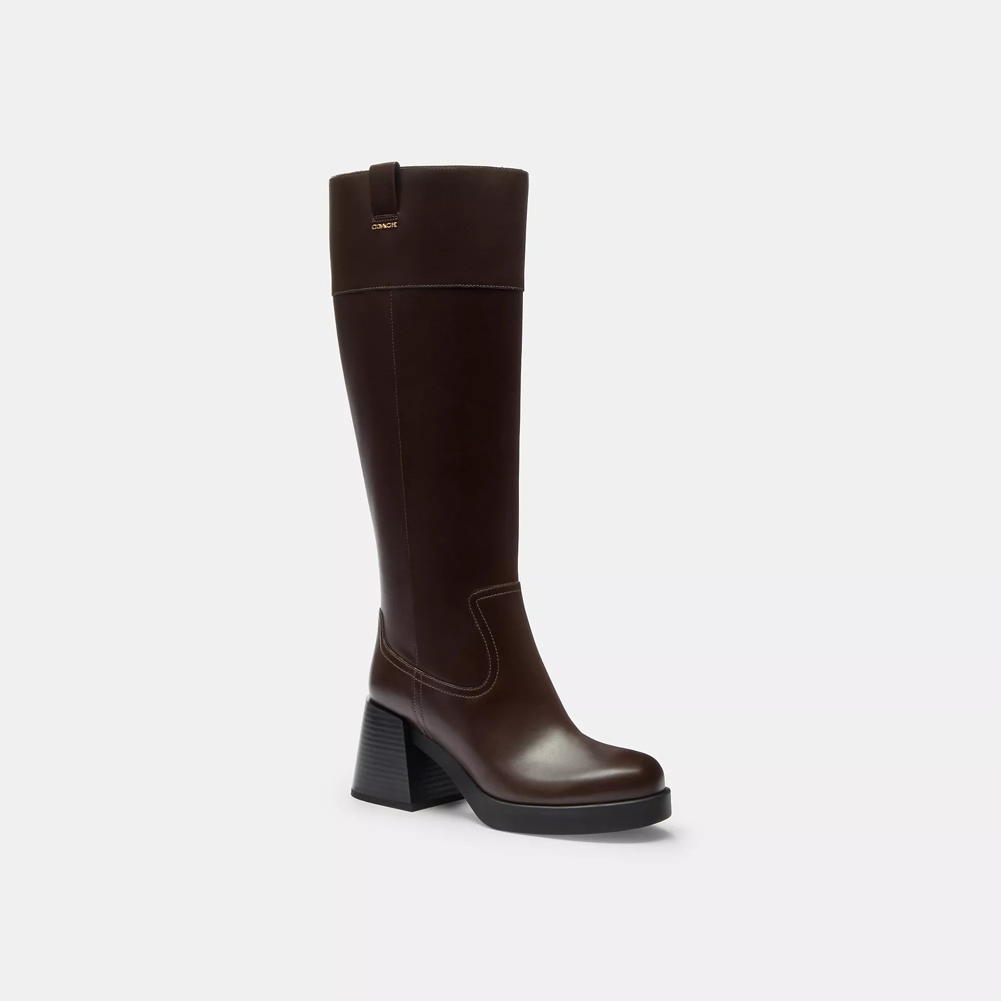 Leather upper Man-made leather lining and footbed Rubber outsole Pull on and zip closure Shaft - 15 3/4 height 15 1/2 circumference 2 3/4 heel Style No. CCH23 | Coach Outlet Block Heel Tall Boot - Brown, Size - 6.5
