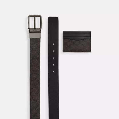 Outlet Boxed Card Case And Belt Gift Set In Signature Canvas