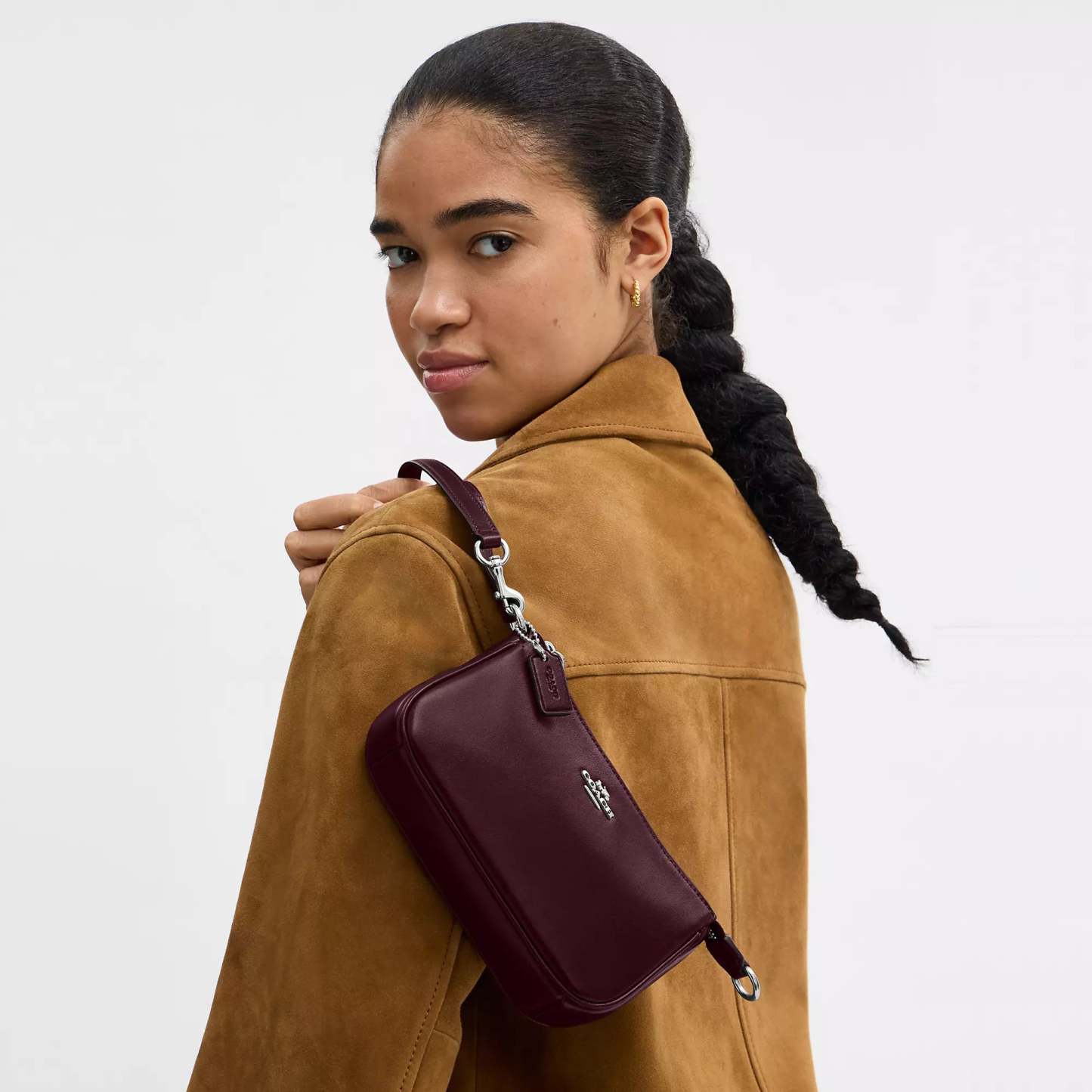 Shiny smooth leather Bag - Two credit card slots Zip-top closure fabric lining Handle with 6 1/4 drop 7 1/2 (L) x 4 1/2 (H) x 2 (W) Bag charm - Zip-top closure fabric lining Handle with 2 1/4 drop Attached split key ring and dogleash clip 3 1/4 (L) x 2 1/4 (H) x 1 (W) Packaged in a Coach gift box Style No. CCK95 | Coach Outlet Boxed Nolita 19 And Nolita Bag Charm Set - Silver