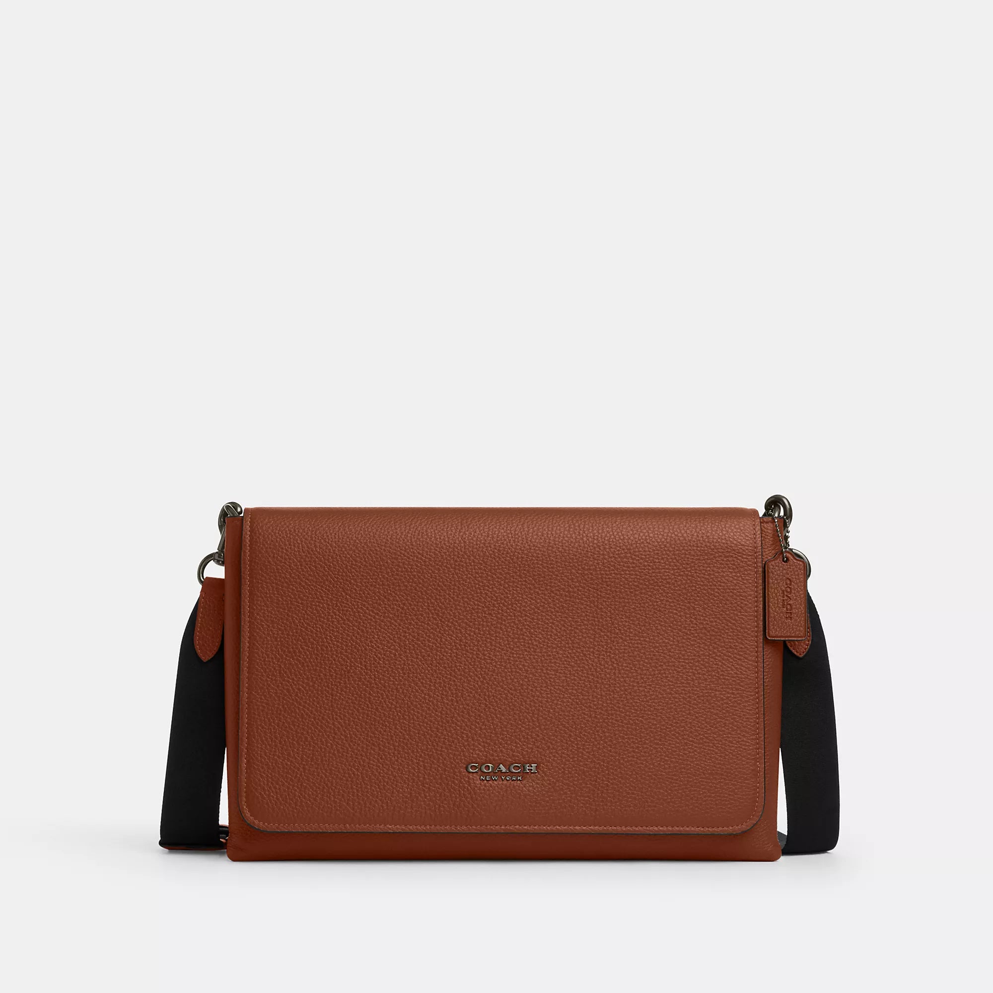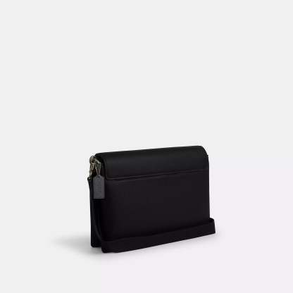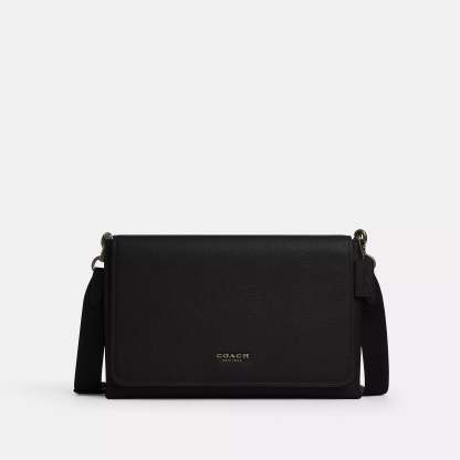 Refined pebble leather Inside zip pocket Magnetic snap closure fabric lining Outside slip pocket Detachable strap with 29 1/2 drop for shoulder or crossbody wear 14 1/4 (L) x 9 1/2 (H) x 3 1/4 (W) Style No. CY768 | Coach Outlet Caleb Messenger Bag - Black