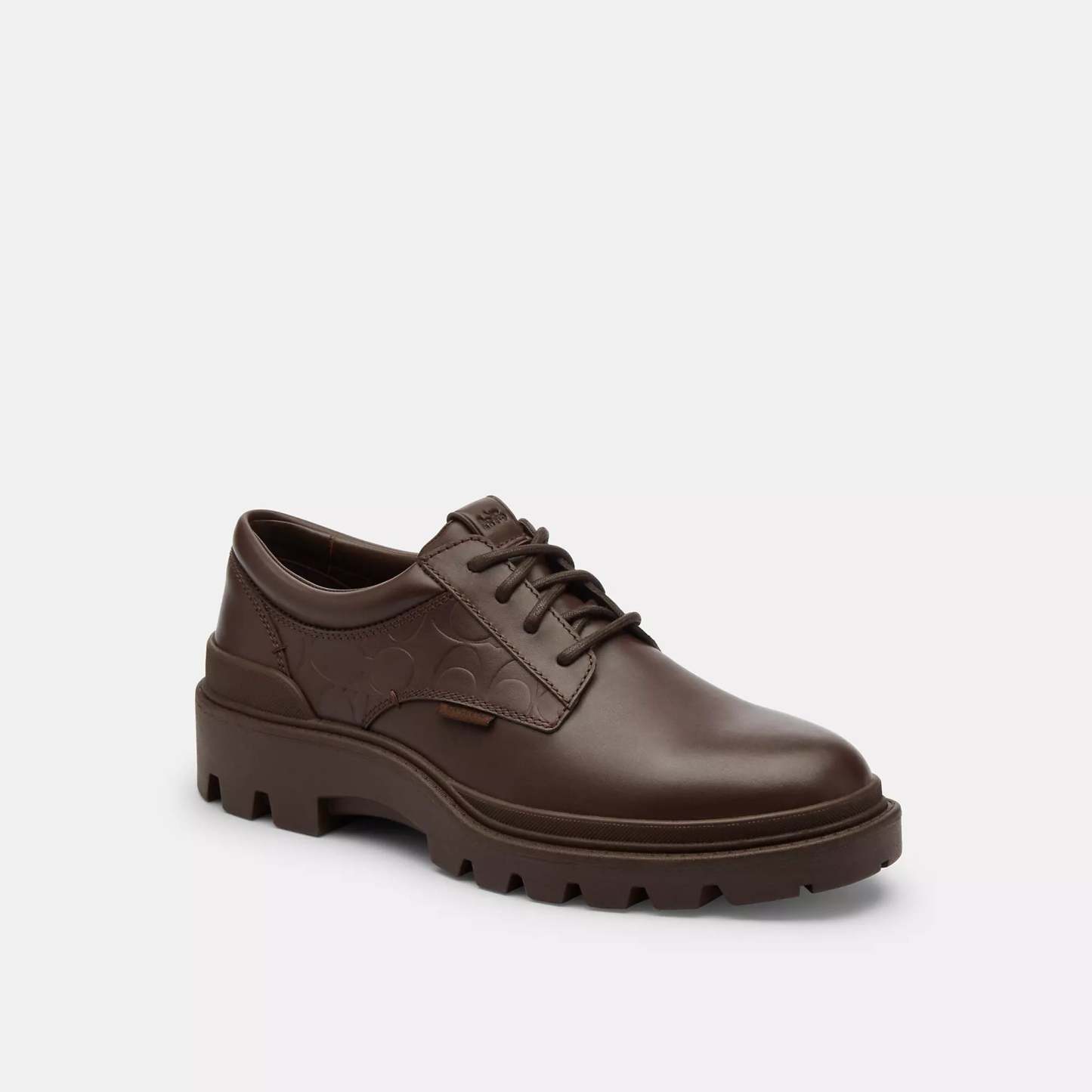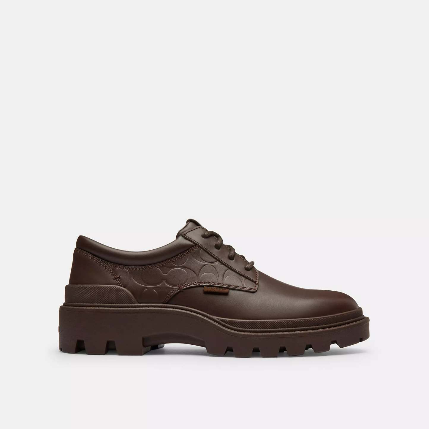 Leather upper Man-made leather lining and footbed Rubber outsole Lace-up closure Style No. CZ076 | Coach Outlet Cameron Derby In Signature Leather - Brown, Size - 11