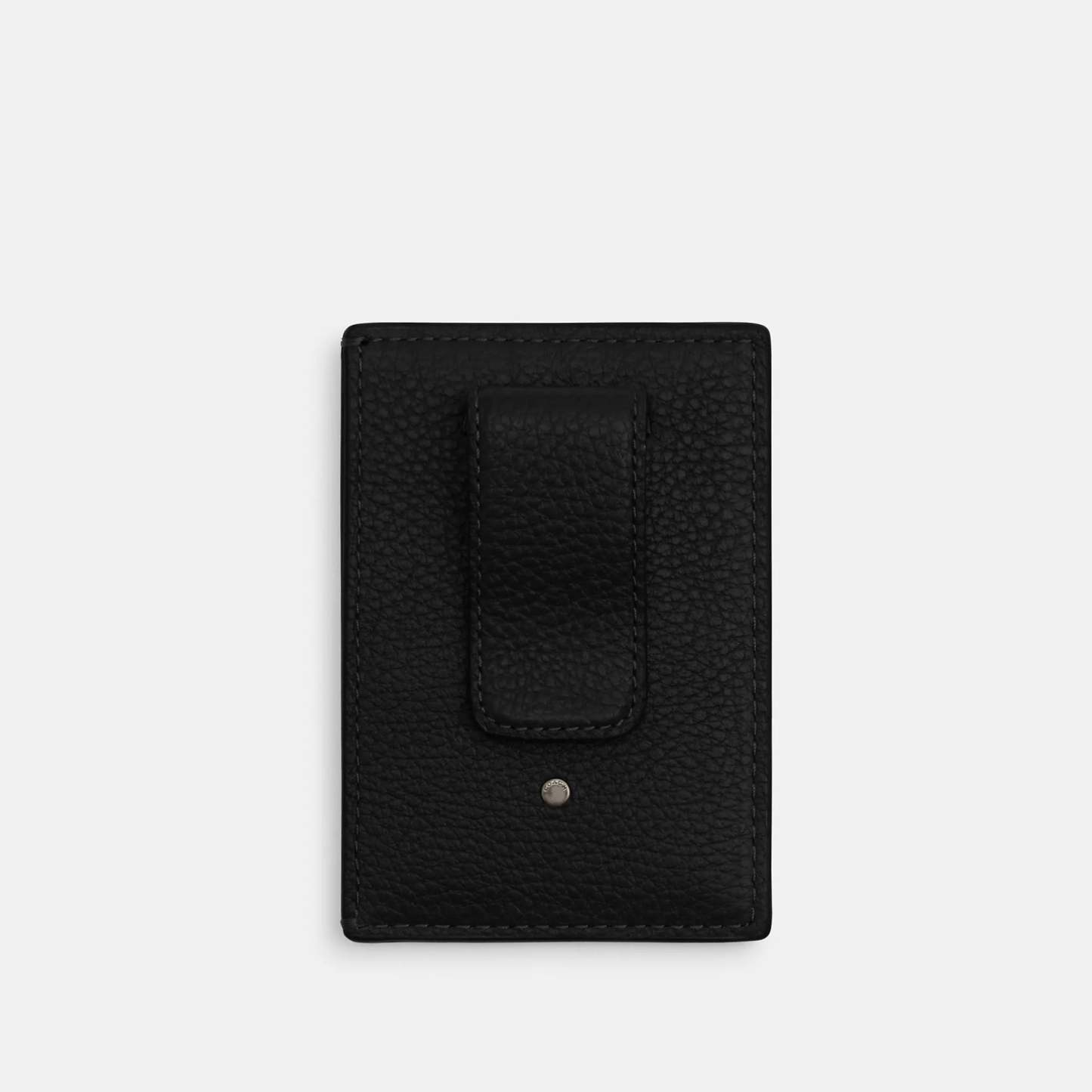 Refined pebble leather Two credit card slots Slip pocket Money clip 4 1/4 (L) x 2 3/4 (H) Style No. CCF97 | Coach Outlet Card Case With Money Clip - Black