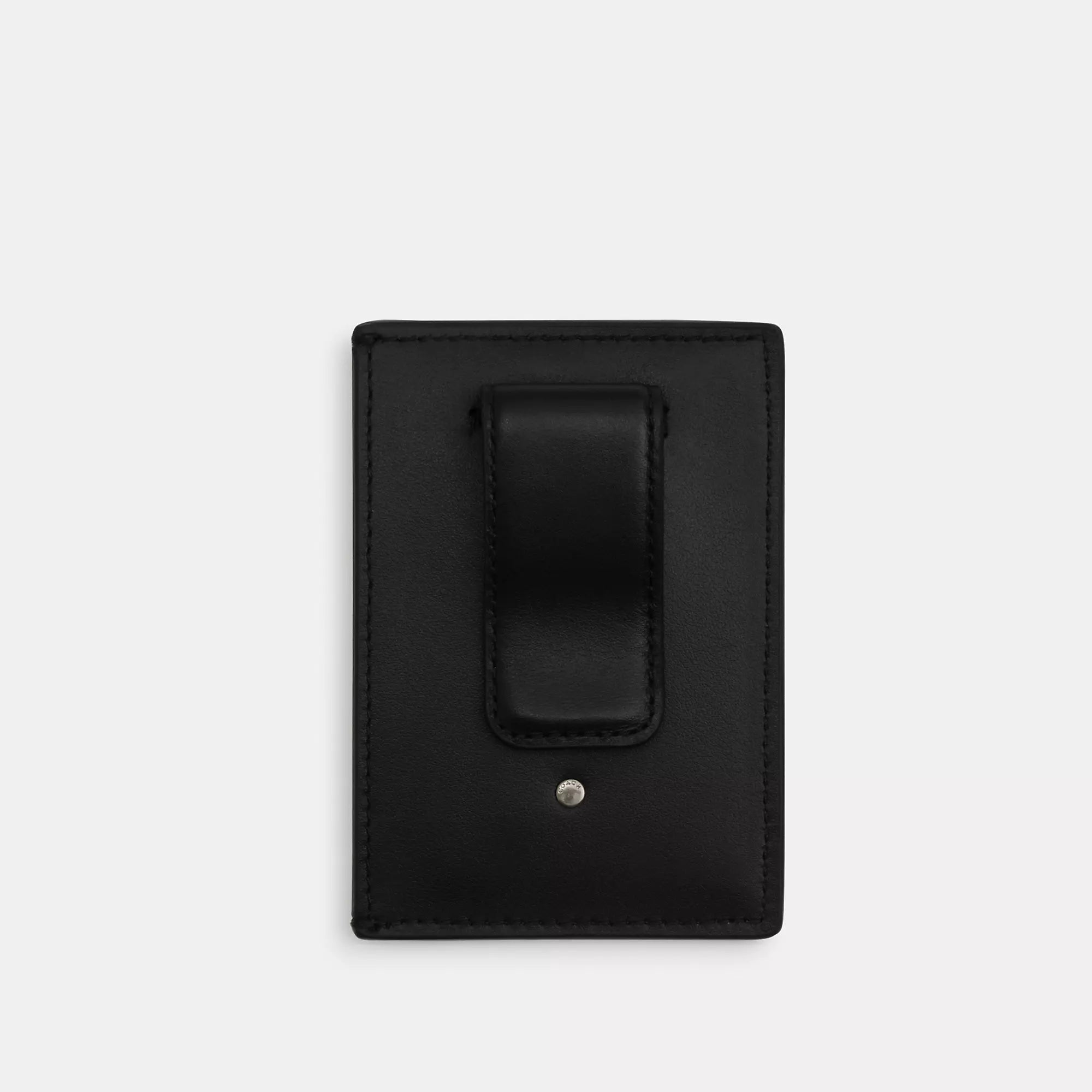 Signature coated canvas and refined calf leather Two credit card slots Slip pocket Money clip 4 1/4 (L) x 2 3/4 (H) Style No. CCF98 | Coach Outlet Card Case With Money Clip In Signature Canvas - Black