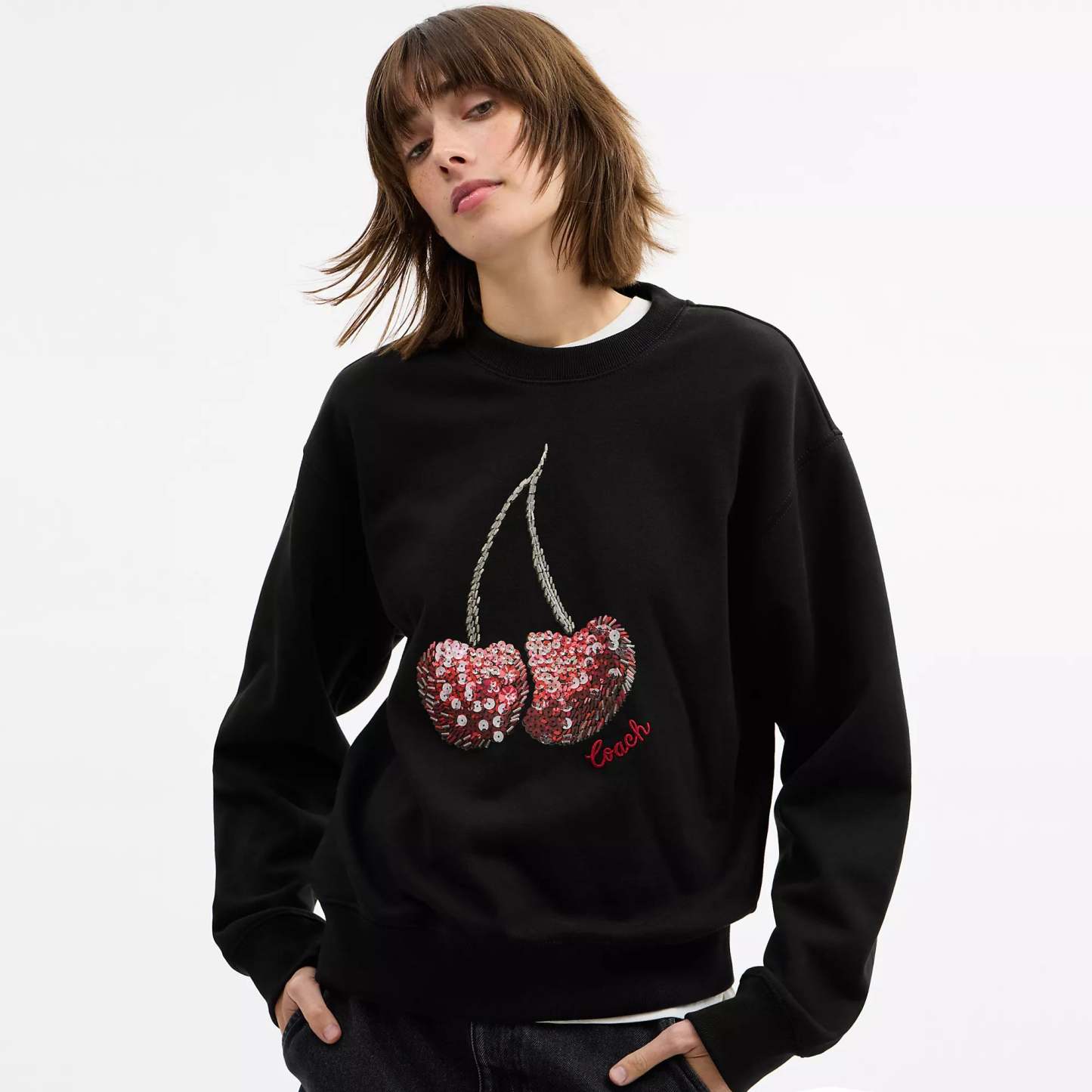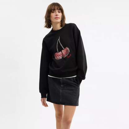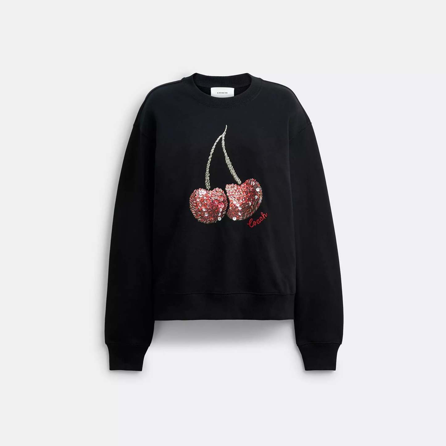 100% cotton Length - 24 1/2 Machine wash Model is 5'10 (178cm) chest 31 (79cm) waist 24 (61cm) hips 35 (89cm) and wears a size S Style No. CDF53 | Coach Outlet Cherry Crewneck Sweatshirt - Black, Size - X-Large