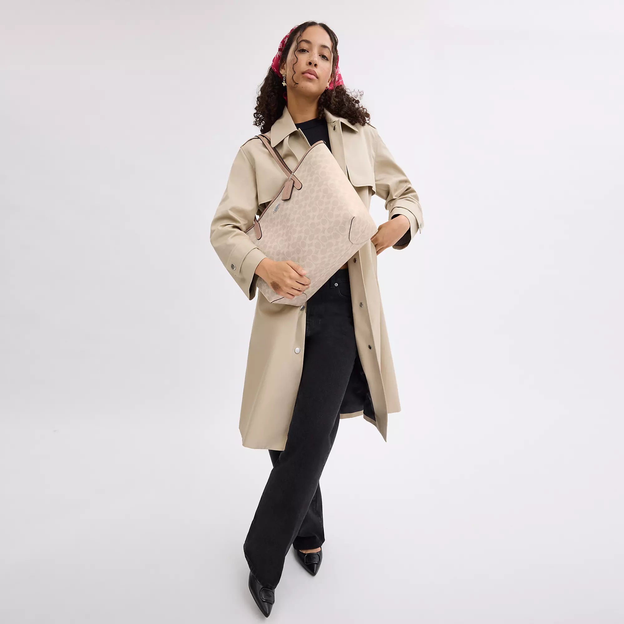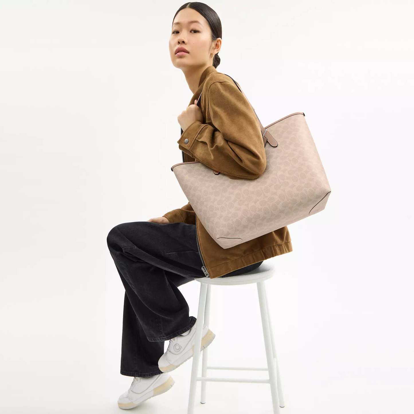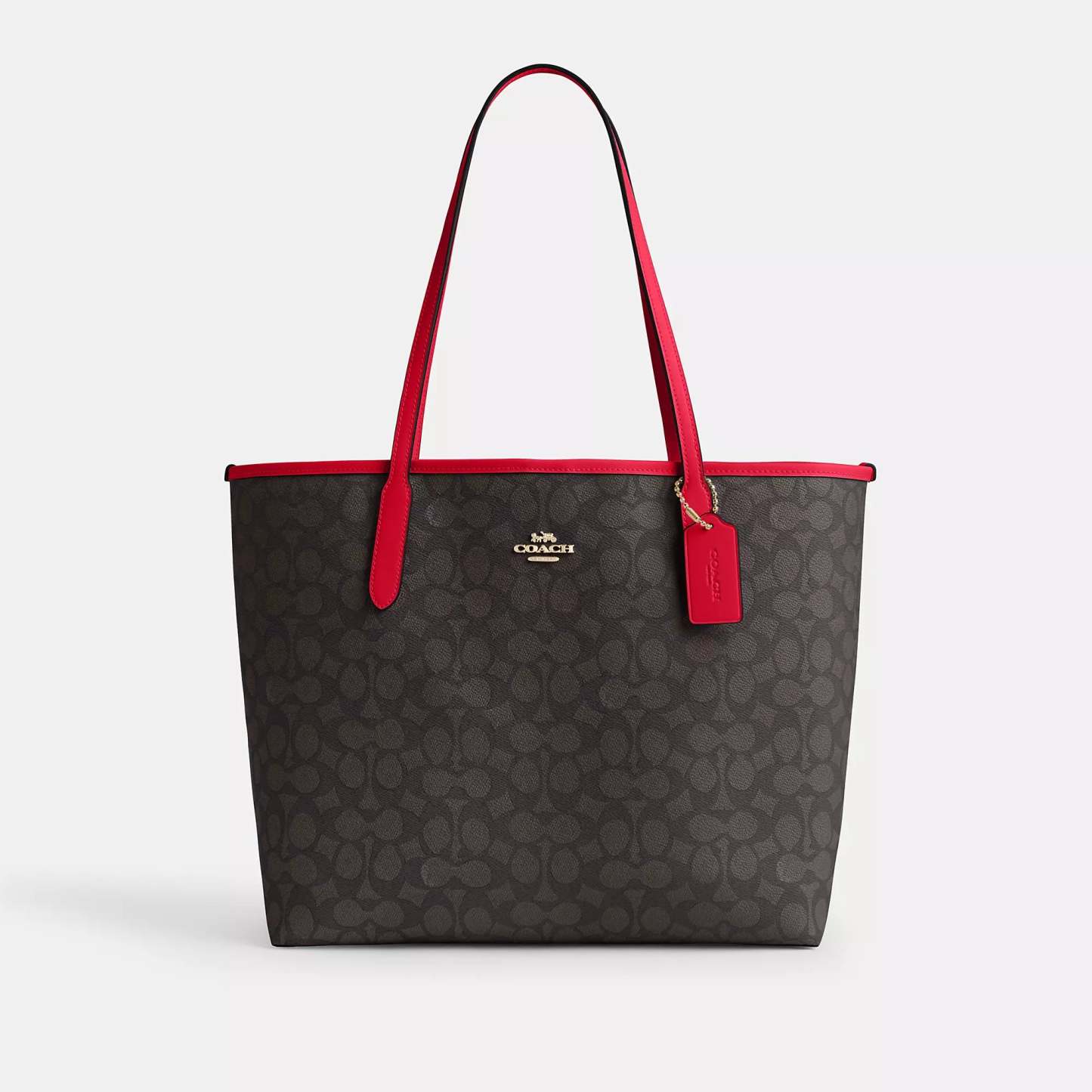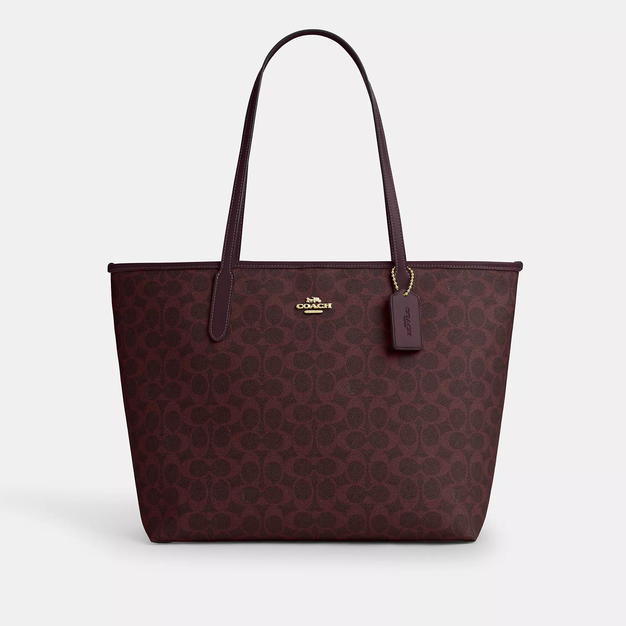 Signature coated canvas Inside zip pocket Snap closure Handles with 10 drop 13 (L) x 11 1/2 (H) x 6 1/4 (W) Style No. CV976 | Coach Outlet City Tote Bag In Signature Canvas - Beige