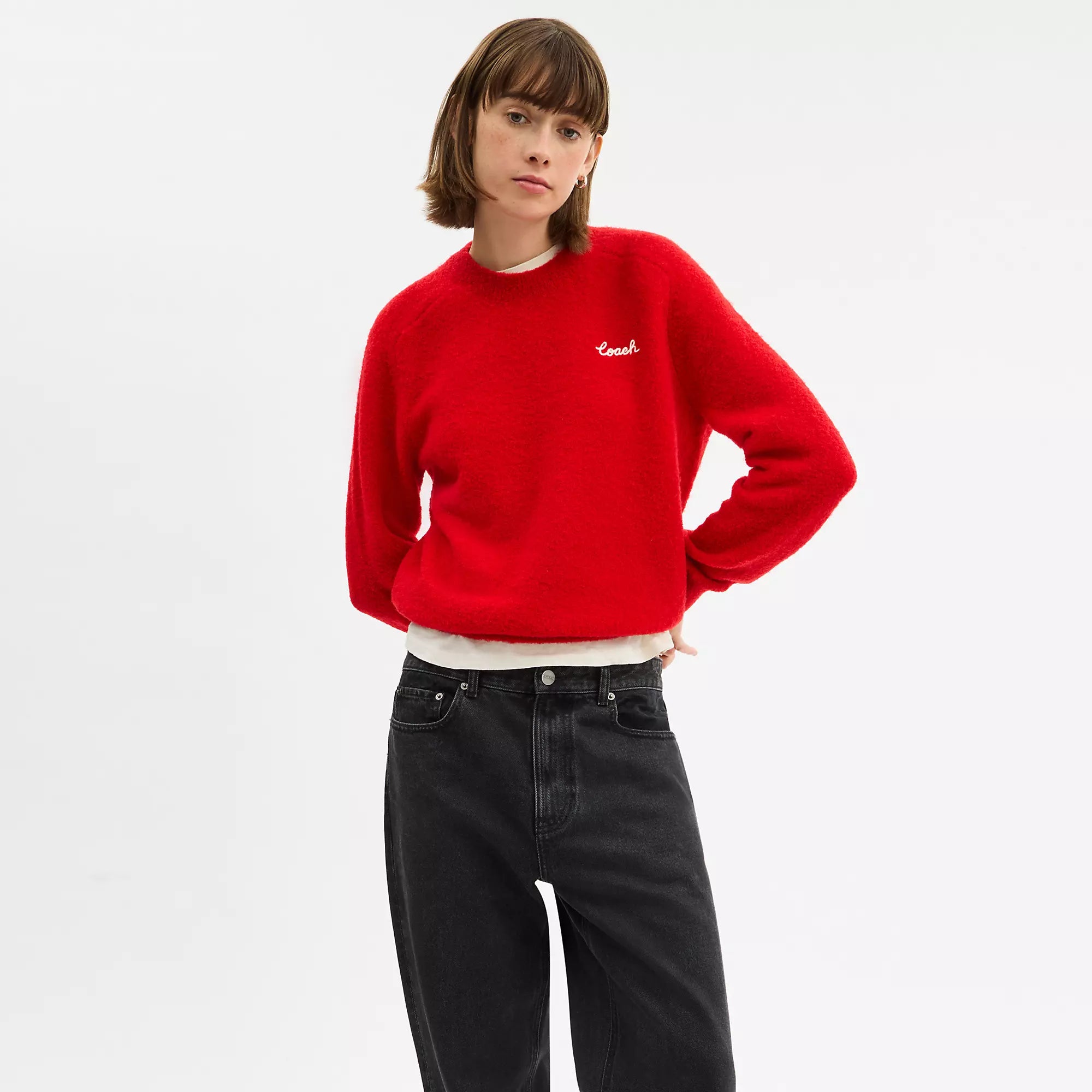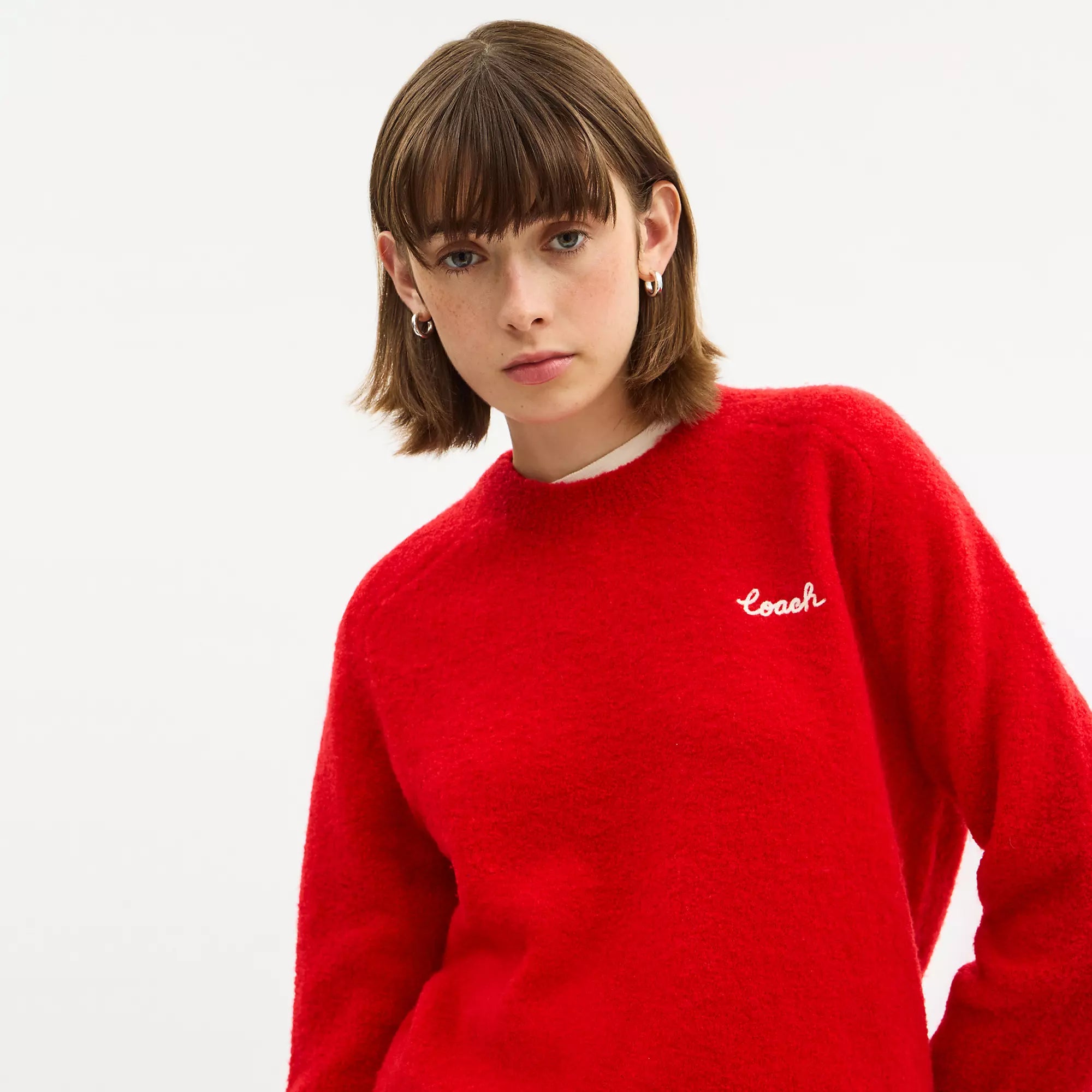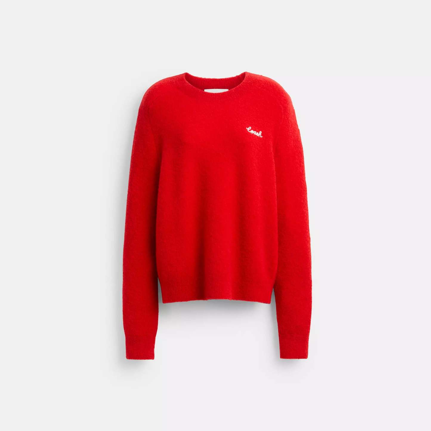 80% wool 20% polyamide Knit rib - 75% wool 24% polyamide 1% elastane Embroidery - 71% acrylic 29% wool Length - 23 1/2 Dry clean Model is 5'10 (178cm) chest 31 (79cm) waist 24 (61cm) hips 35 (89cm) and wears a size S Style No. CCA35 | Coach Outlet Coach Embroidered Crewneck Sweater - Red, Size - X-Large
